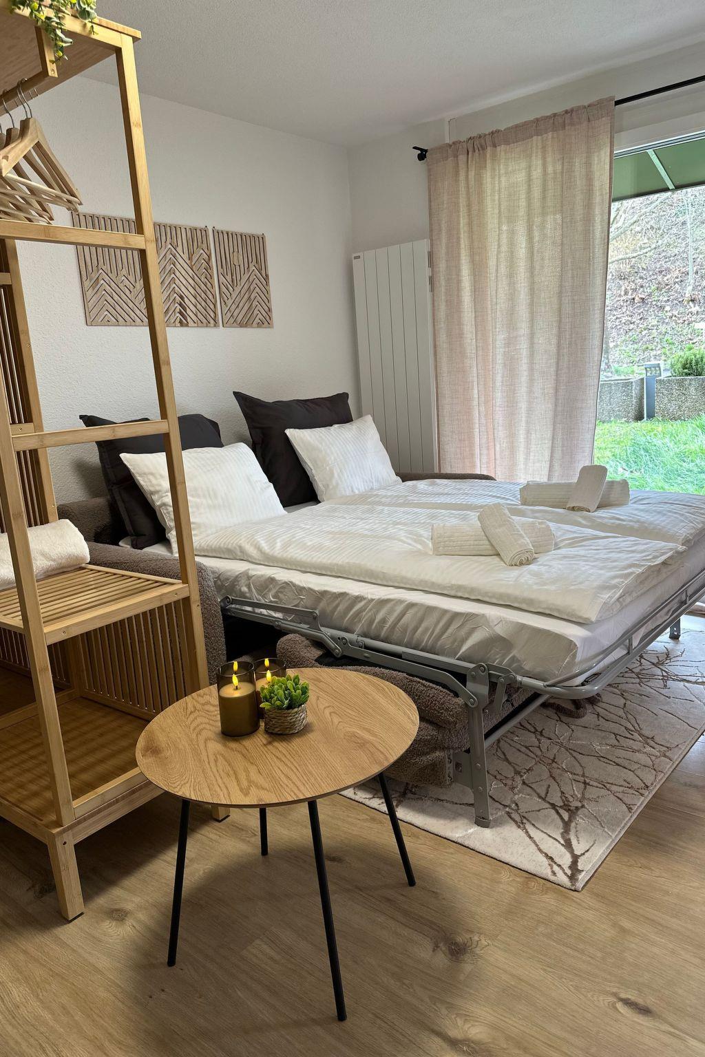 The location in Spiez is ideal for anyone who appreciates being close to nature as well as a wide range of leisure activities. Just a 3-minute walk from the lake, this holiday flat offers the perfect base for water sports, hiking and cycling tours. The proximity to Interlaken (20 minutes) and Thun (10 minutes) also opens up great opportunities for excursions and shopping trips. Public transport is only a 2-minute walk away, making exploring the surrounding area a breeze.