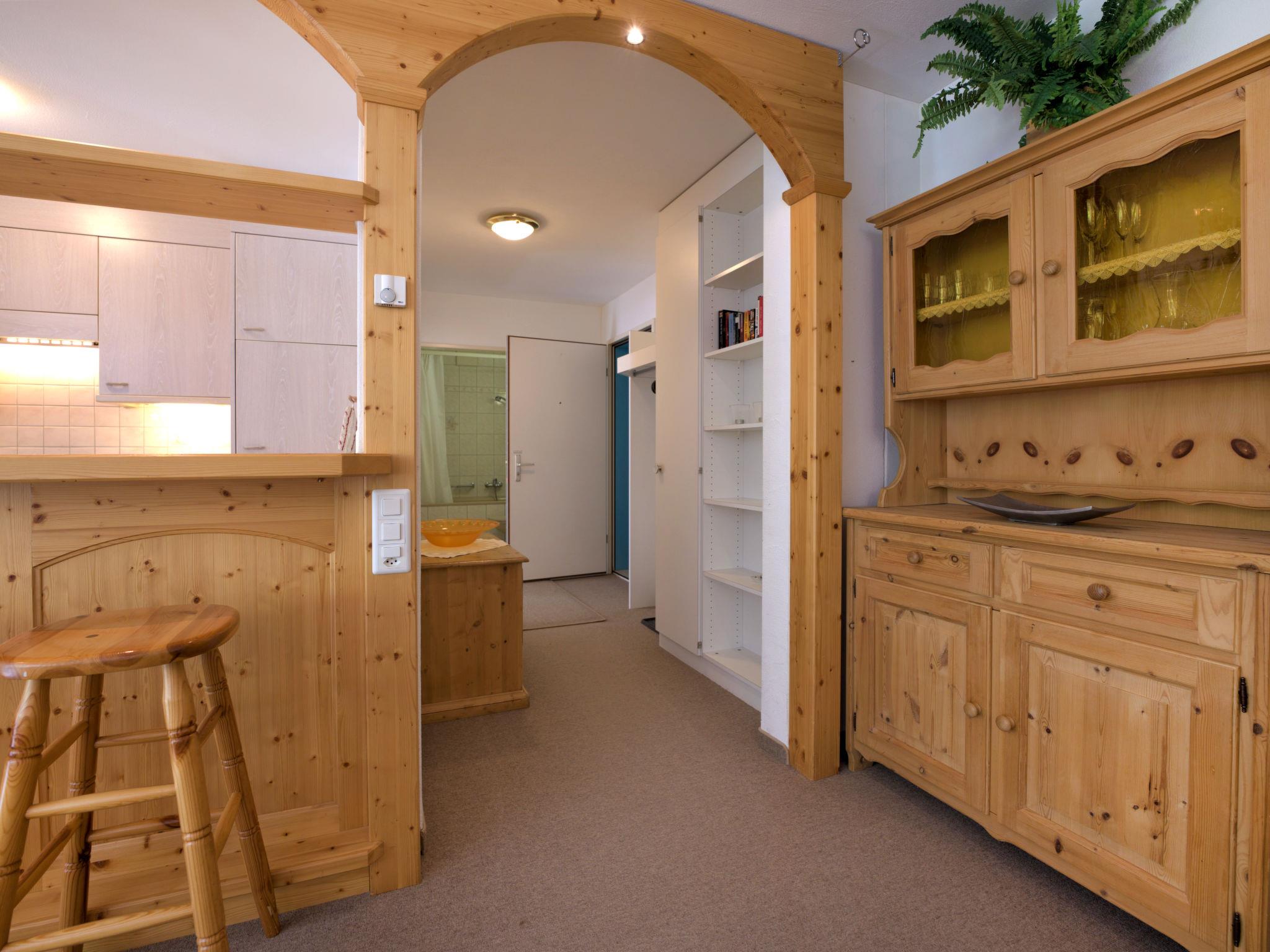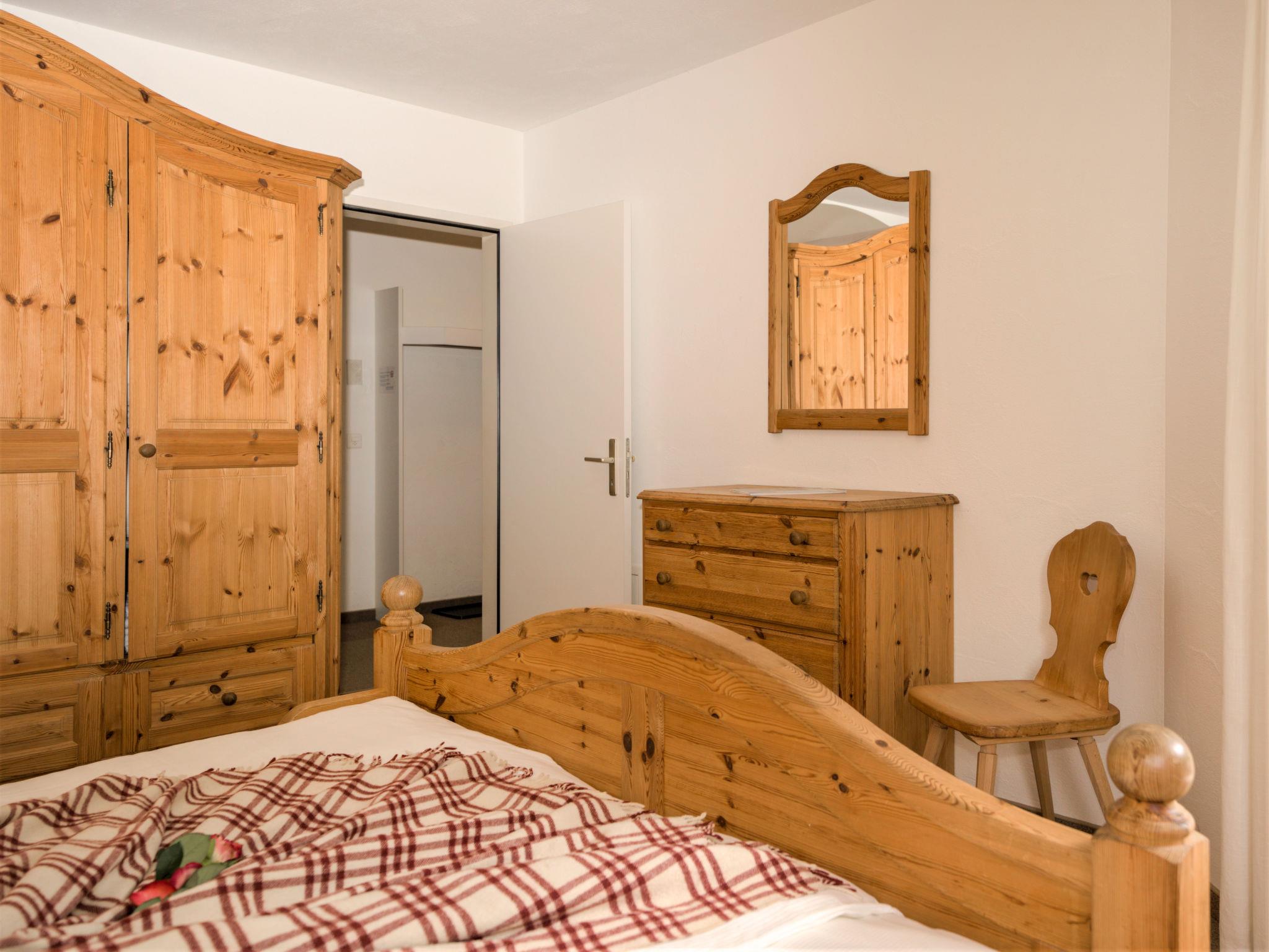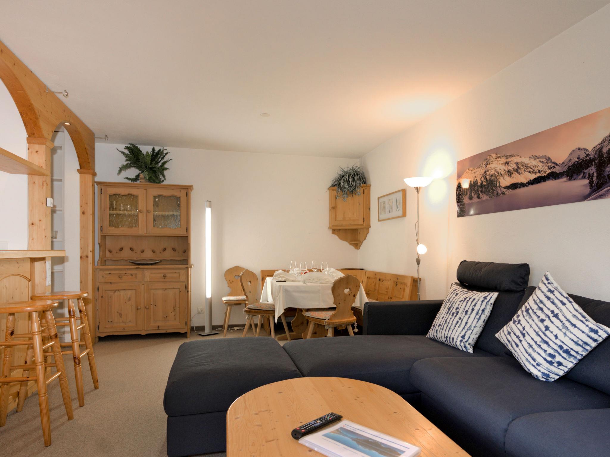 "Chesa Flora 53", 2-room apartment 66 m2, on the ground floor. Bright, comfortable and cosy furnishings: living/dining room with 1 double sofabed (140 cm, length 190 cm), satellite TV. Exit to the patio. 1 room with 1 double bed (2 x 90 cm, length 200 cm). Open kitchen (oven, dishwasher, 4 ceramic glass hob hotplates, toaster, kettle, electric coffee machine, raclette grill, fondue Set (chinoise, cheese)) with small bar. Bath/WC. Heating. Carpet. Small patio. Terrace furniture. View of the forest. Facilities: hair dryer. Internet (WiFi, free). Garage space n 22 (1 car), height 220 cm, width 240 cm. Please note: non-smokers only.