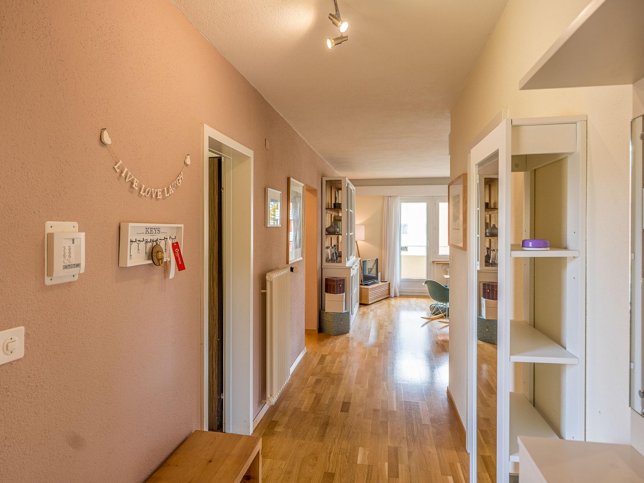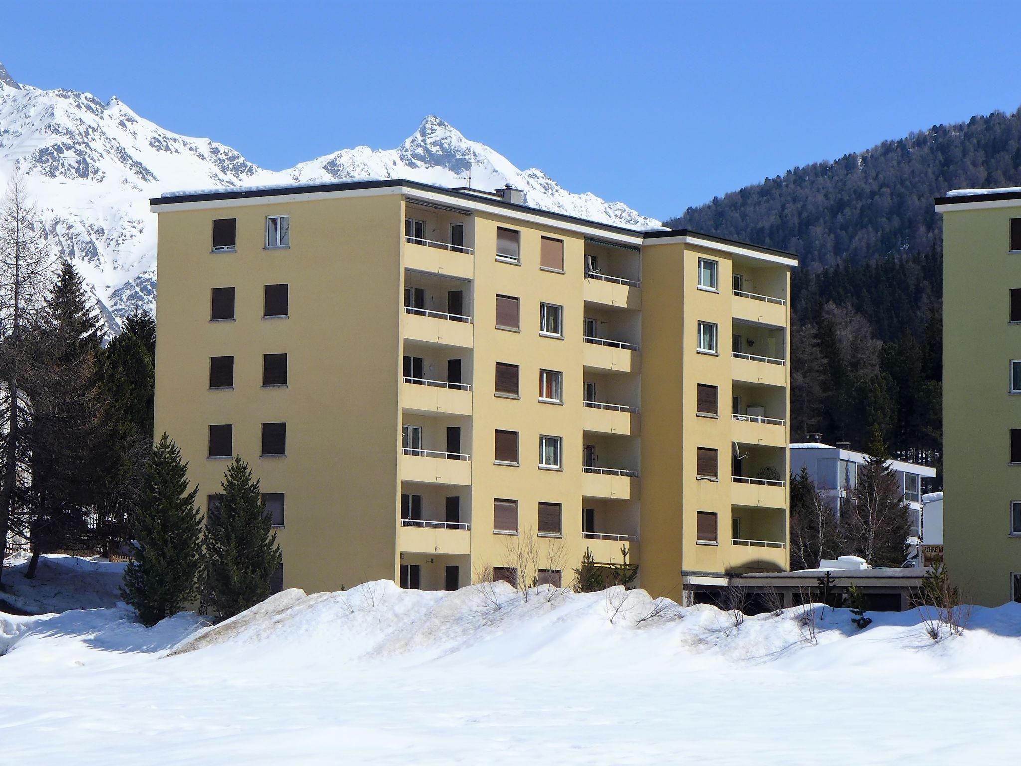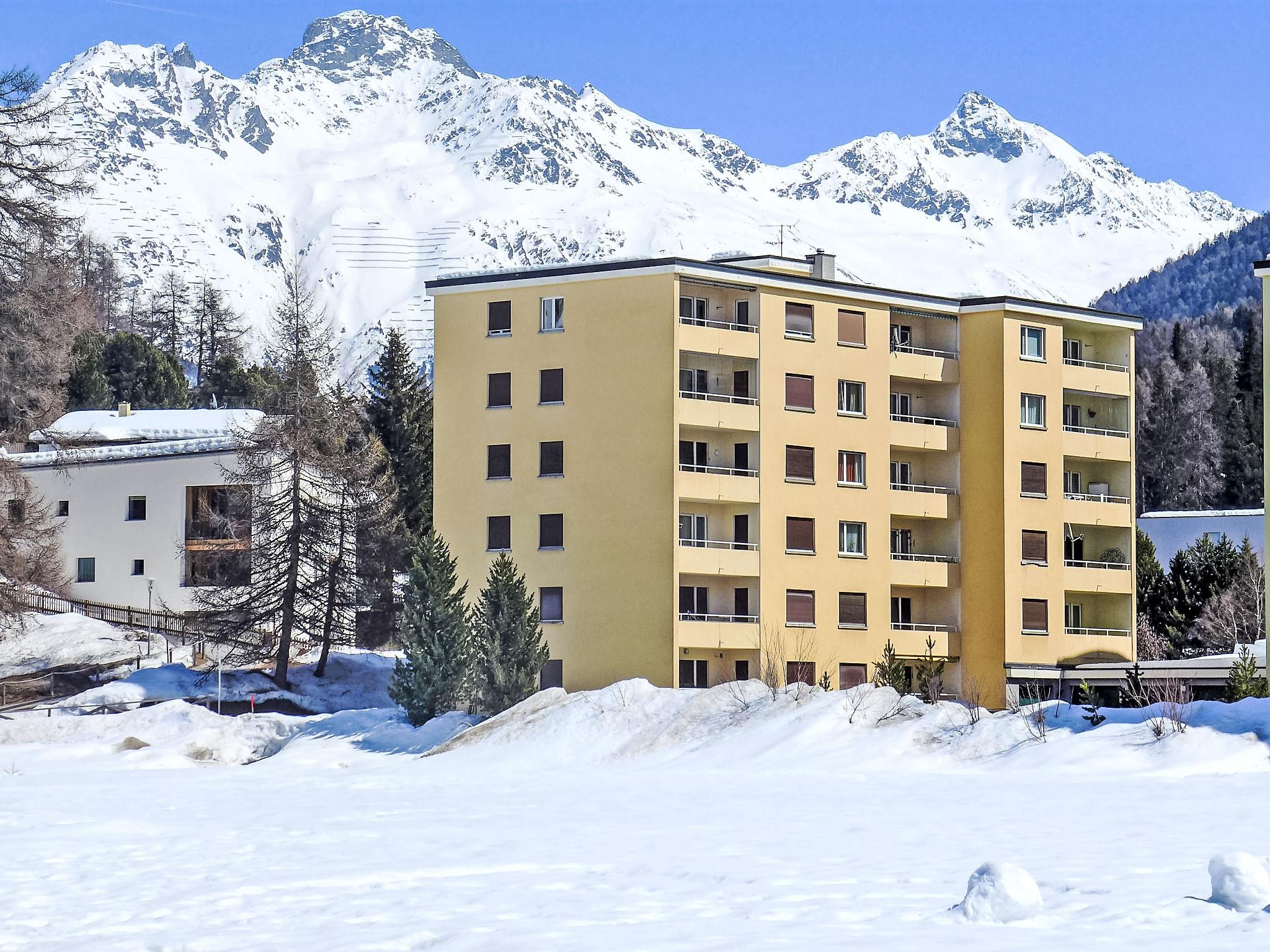 St. Moritz Bad: Apartment house "Chesa Daniela B", 6 storeys, built in 1971. In a central position in the residential district, from the edge of the forest, 50 m from the lake, 1.2 km from the skiing area, in a cul-de-sac. In the house: lift, central heating system, washing machine (for shared use, extra), drying room. Single garage. Shop, supermarket 1.1 km, restaurant 350 m, bakery 900 m, café 750 m, bicycle rental, bus stop "St. Moritz Bad, Giand'Alva" 230 m, railway station 2.4 km, indoor swimming pool 750 m, thermal baths "Heilbadzentrum St. Moritz" 900 m, lake St. Moritzer See 50 m. Golf course (18 hole) 8 km, surf school 5.6 km, tennis 1.3 km, indoor tennis centre 1.3 km, minigolf 750 m, riding stable 3.2 km, walking paths from the house 50 m, cycle lane 50 m, cable car 1.2 km, ski lift 1.2 km, slopes 1.2 km, ski rental 750 m, ski bus stop 230 m, ski school 2.4 km, children's ski school 2.4 km, sled run 6 km, cross country ski track 200 m, ice rink 750 m, children's playground 850 m. Nearby attractions: Segantini Museum 2.6 km, Engadiner Museum 1.5 km, Mili Weber-Haus 3.2 km, Olympia Bob Run mit Museum 3 km, Nietzsche Museum in Sils-Maria 9.9 km. Well-known ski regions can easily be reached: Corviglia Piz Nair 1.2 km, Corvatsch - Furtschellas 6.8 km, Diavolezza - Lagalb 20.1 km. Well-known lakes can easily be reached: St.Moritzer See 50 m, Silvaplaner See 5.6 km, Silser See 9.8 km. Hiking paths: Stazerwald & Stazersee, Corviglia Piz Nair, Muottas Muragl. The keys‘ handover takes place by the agency Interhome in St. Moritz Bad.