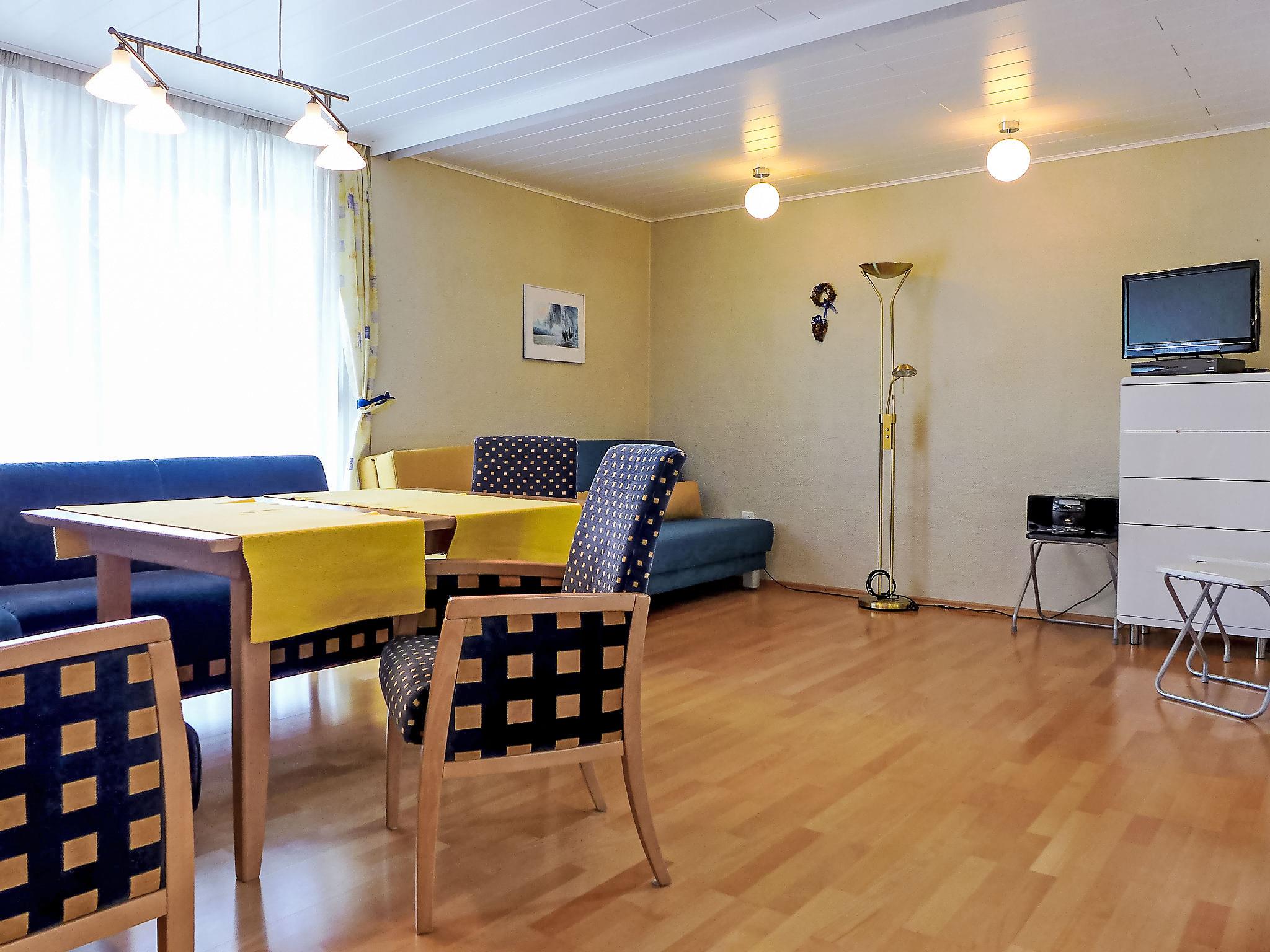 "Appartmenthaus Skyline 309", 2-room apartment 53 m2 on 3rd floor. Bright, comfortable furnishings: living/sleeping room with 2 sofabeds (90 cm, length 200 cm), dining table, satellite TV and radio. Exit to the balcony, south-west facing position. 1 room with sliding door with 1 double bed (2 x 85 cm, length 190 cm). Open kitchen (4 hot plates, oven, dishwasher, toaster, kettle, electric coffee machine). Bath/WC. Heating. Parquet floors. Beautiful view of the mountains and the resort. Facilities: hair dryer. Internet (WiFi, free). Parking at the house. Suitable for families.