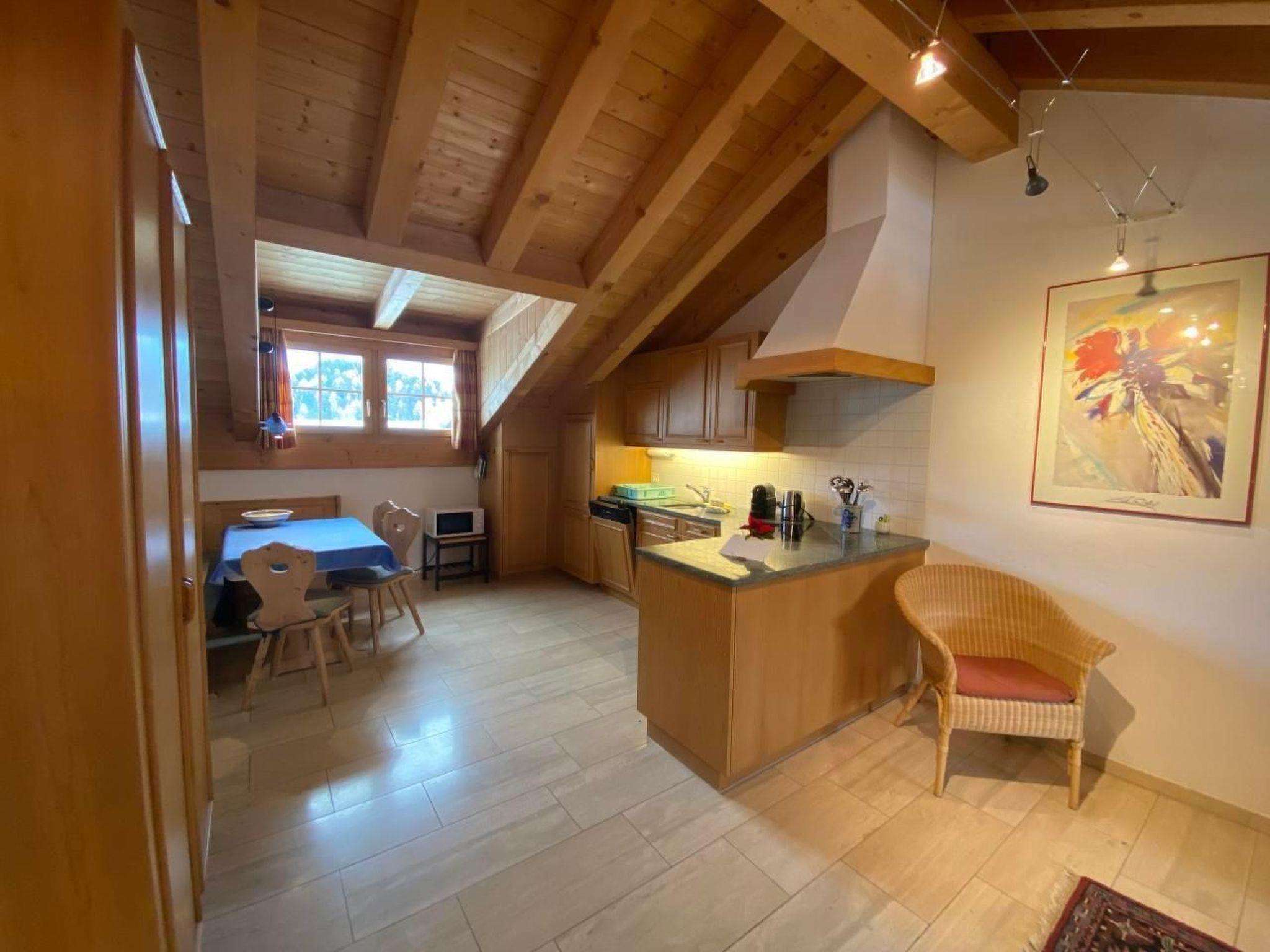 Welcome to our cosy 2 ½ room top floor flat with 60 m² of living space, located in quiet Champfer, close to fashionable St. Moritz. The flat, which is on the 4th floor of an apartment building, is easily accessible via a lift from the underground car park to the 3rd floor. Its location and facilities make it the perfect starting point for unforgettable holiday experiences in the Engadin.