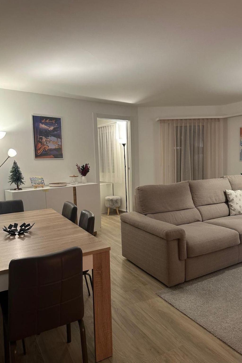 Discover the charm of St. Moritz by staying in this comfortable and light-filled 61 sqm flat. On the first floor of a building with lift, this cosy space will envelop you in an instant holiday feeling. A perfect mountain retreat, from the flat you can enjoy the serenity and energy of one of the world's most prestigious resorts.