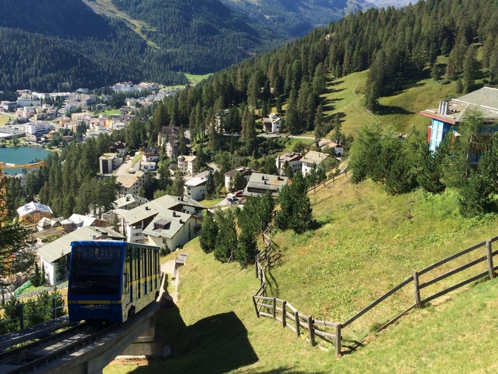 The area surrounding St. Moritz Bad is a world of its own, combining urbanity and alpine adventure. There are first-class restaurants, cosy cafés and extensive shopping facilities in the immediate vicinity. Sports enthusiasts will find the altitude training centre in the immediate vicinity, while the Signal mountain railway, the Ovaverva indoor swimming pool with spa area, bike and ski hire and a children's playground underline the variety on offer. St. Moritz village, with its picturesque houses and luxury boutiques, can also be reached on foot in just 20 minutes.