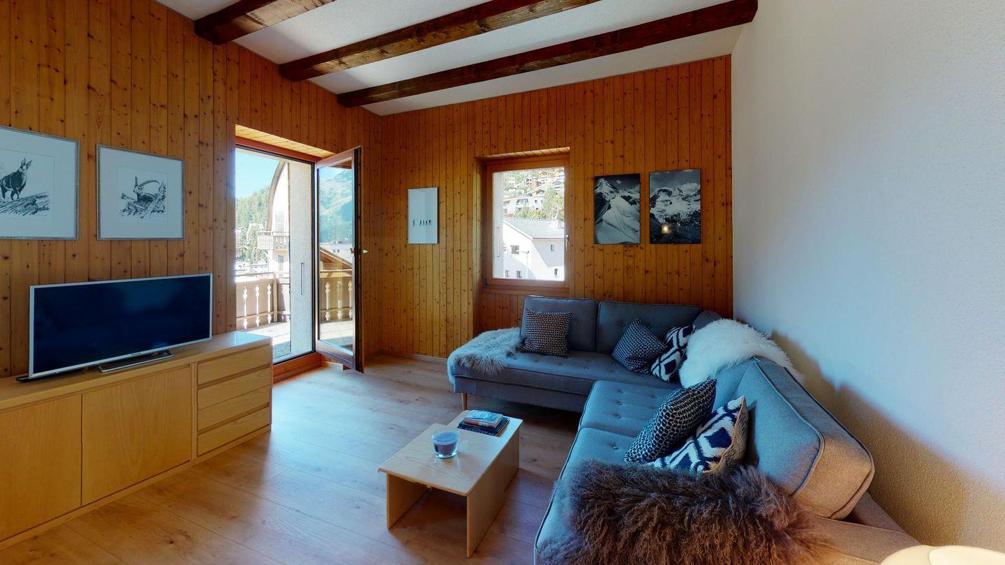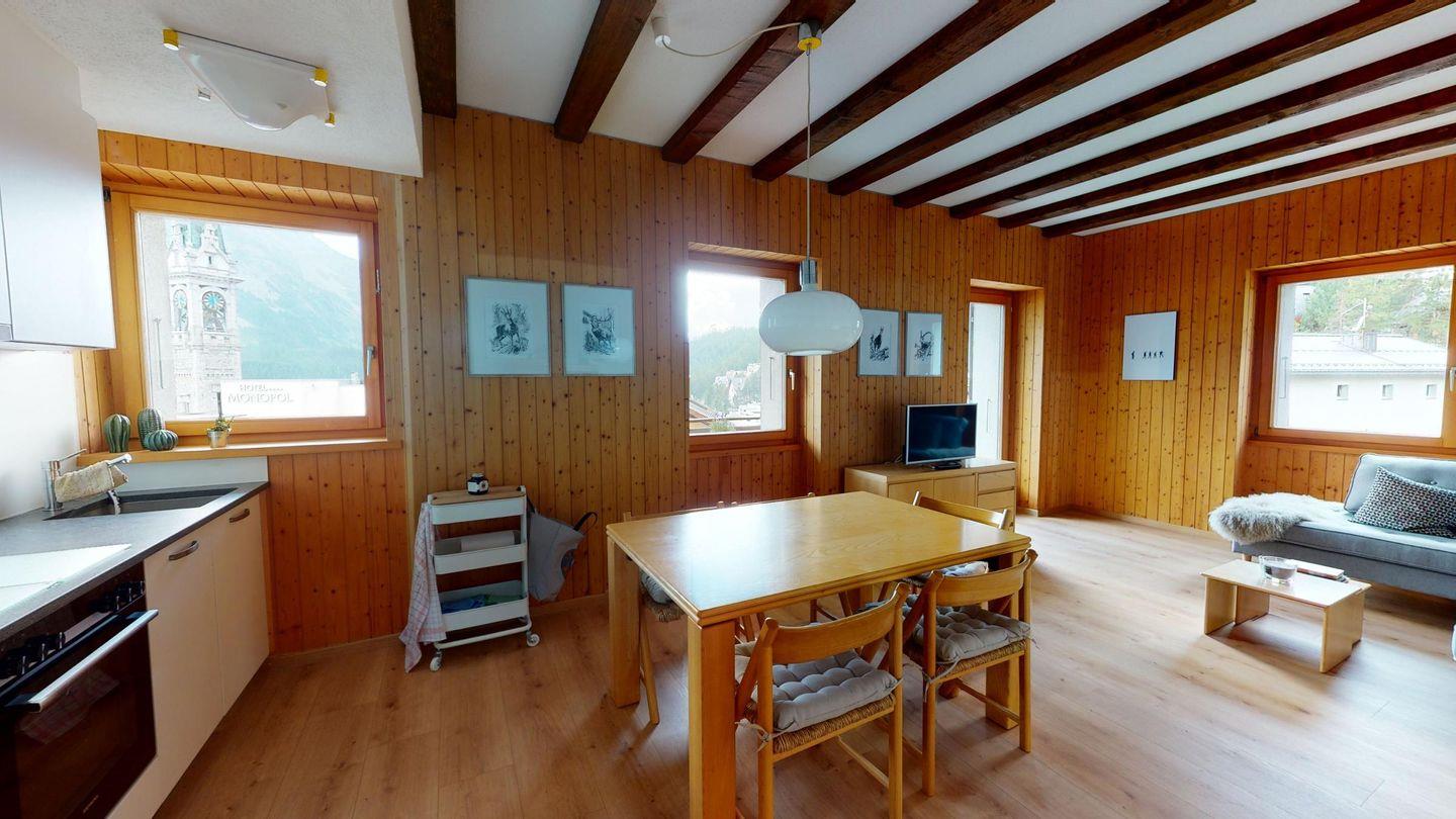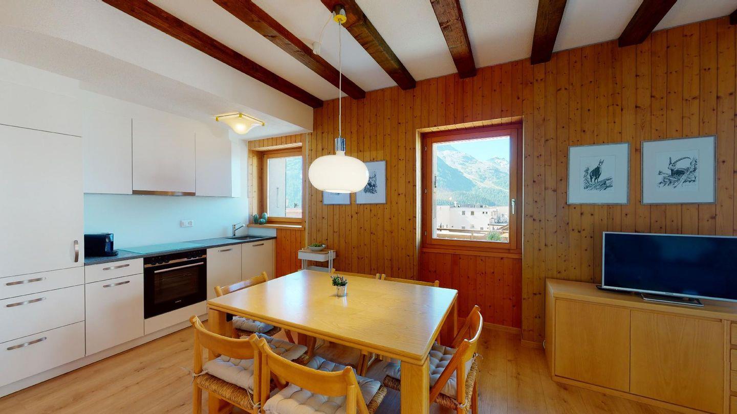 Etwas oberhalb St. Moritz-Dorf gelegenes Ferienhaus. Idealer Ausgangspunkt für Ihren verdienten Urlaub. Kaum 5 Gehminuten ins Zentrum von St. Moritz-Dorfs logieren Sie in der perfekten Ferienwohnung. Die Talstation der Corviglia-Bahn für Skifahrer und Wanderer befindet sich 300m von Ihrer Unterkunft. Geniessen Sie es mitten am Puls von St. Moritz-Dorf zu sein mit Einkaufsmöglichkeiten, Restaurants und Bars.