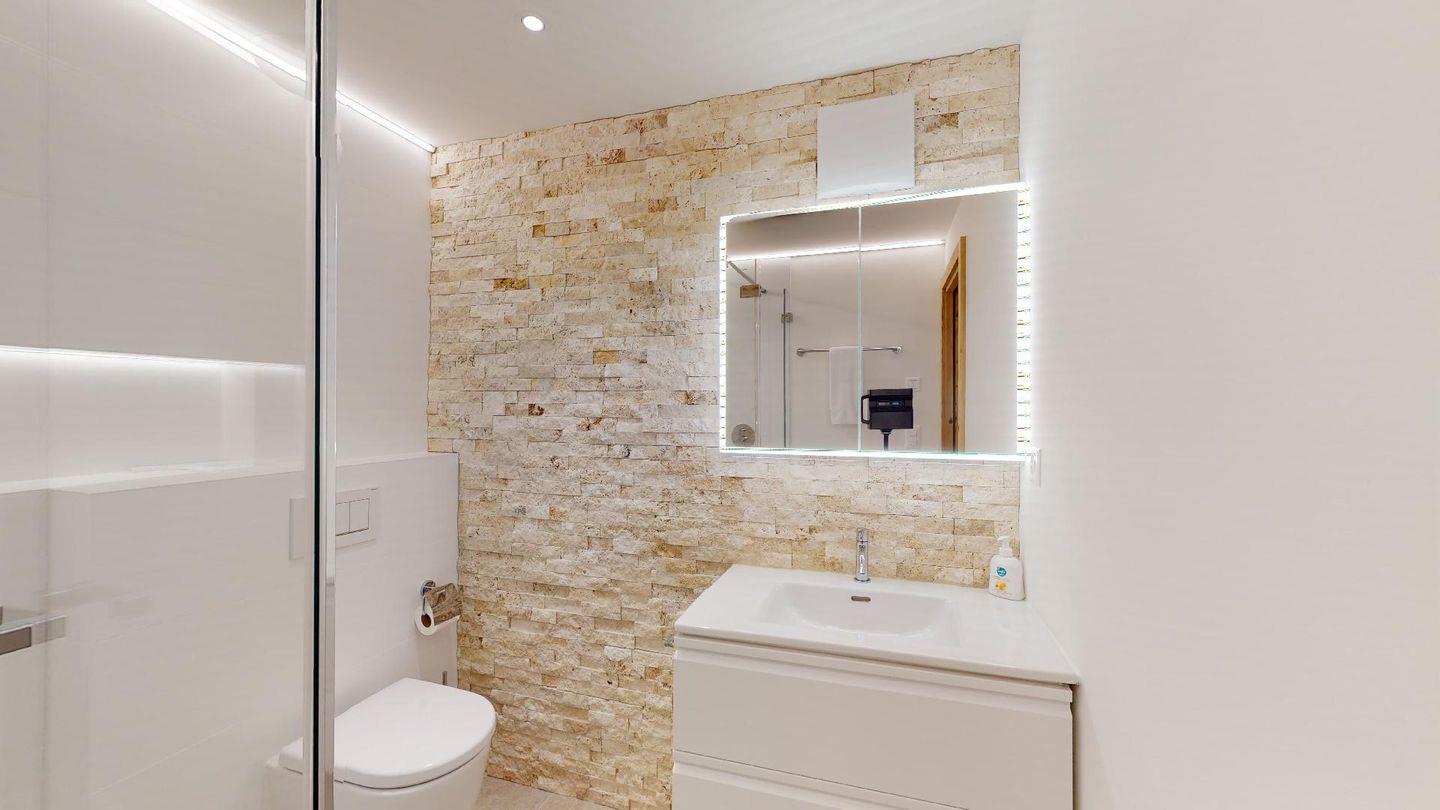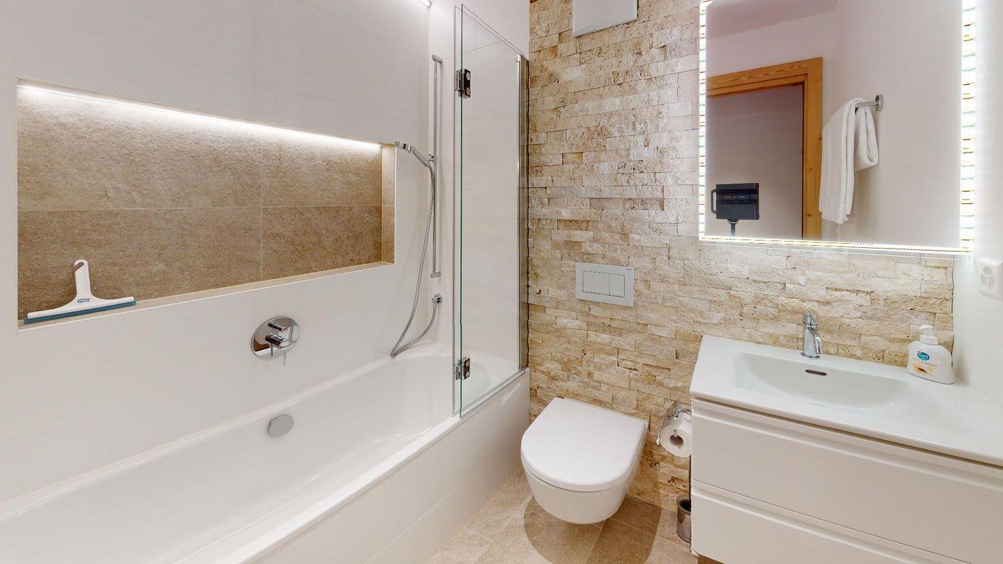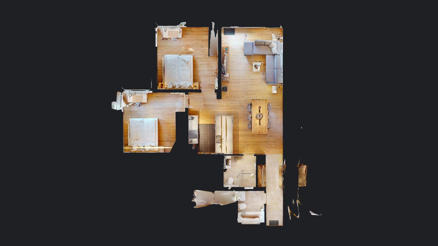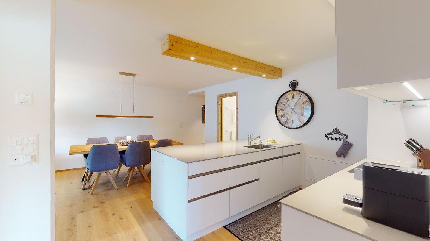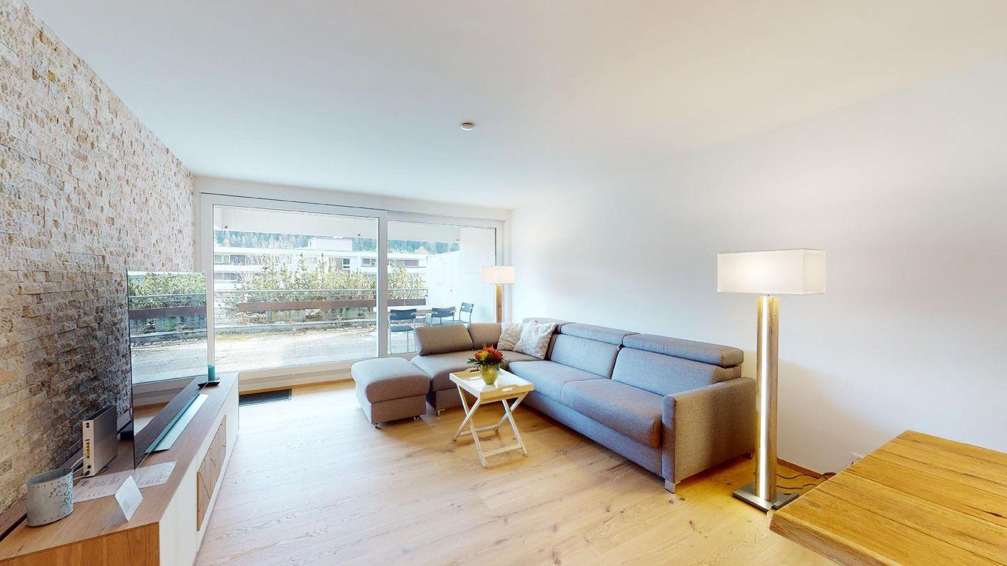 Modernes Design widerspiegelt diese luxuriöse 3 - Zimmer Ferienwohnung im Erdgeschoss. Garderobe im Eingangsbereich. Gemütliches Wohn- /Esszimmer mit offener Küche. 2 Doppelschlafzimmer mit Homeoffice-Möglichkeit. Gästetoilette mit Badewanne/Dusche. 1 Bad/Dusche. Lift. Aussenparkplatz mit Parkkarte auf den Gemeindeparkplätze in St. Moritz - Bad.