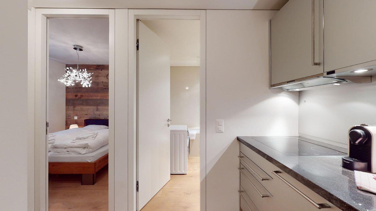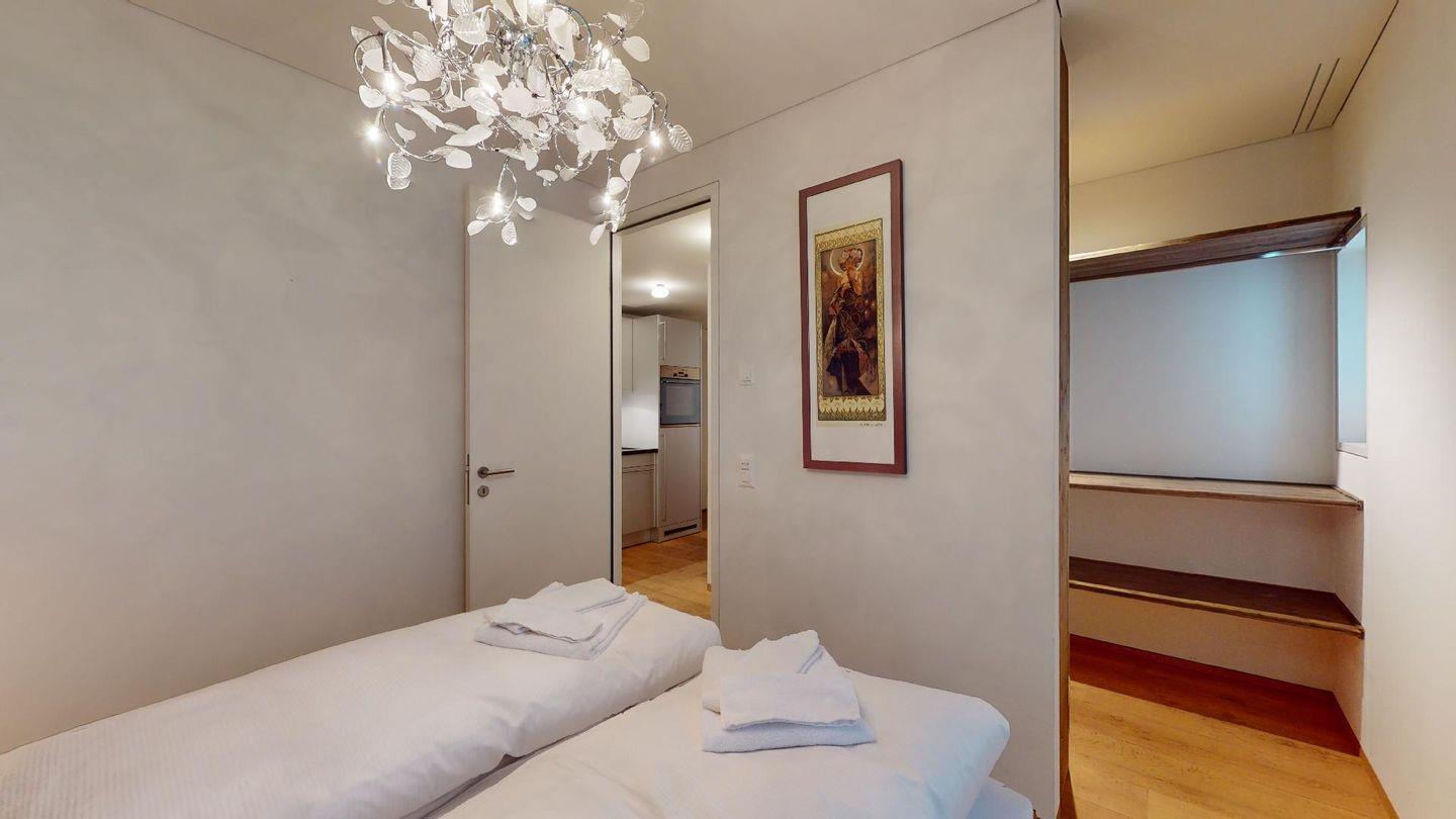 3 ½ Zimmerwohnung, ca. 70m2, im 5. Stock im Herzen von St. Moritz. Wohnzimmer mit TV, Essecke und Balkon. Offene Küche mit Backofen, Kühlschrank mit Gefrierfach und Geschirrspüler. Doppelzimmer mit grossem begehbarem Kleiderschrank. Badezimmer mit Wanne, WC, Lavabo und eigener Waschmaschine. Ein Schlafzimmer mit Etagenbett. Parkplatz in der Garage. Haustiere sind willkommen.