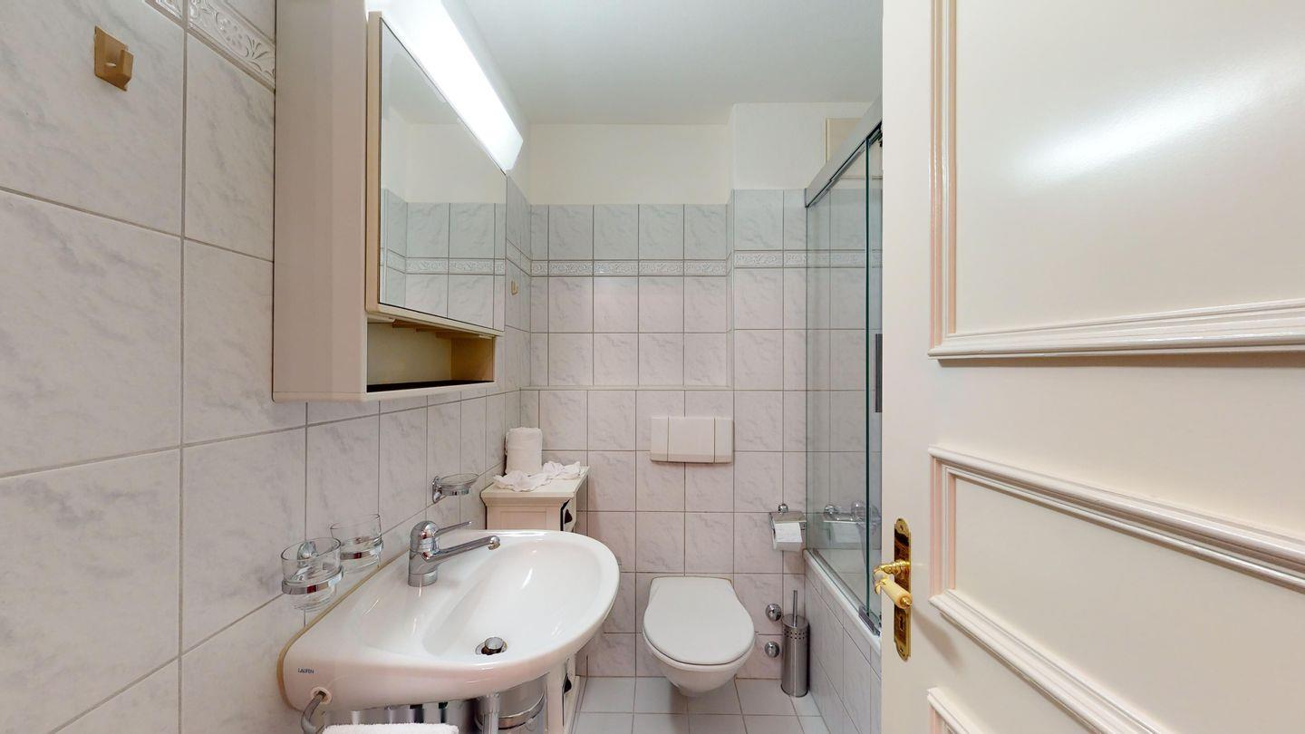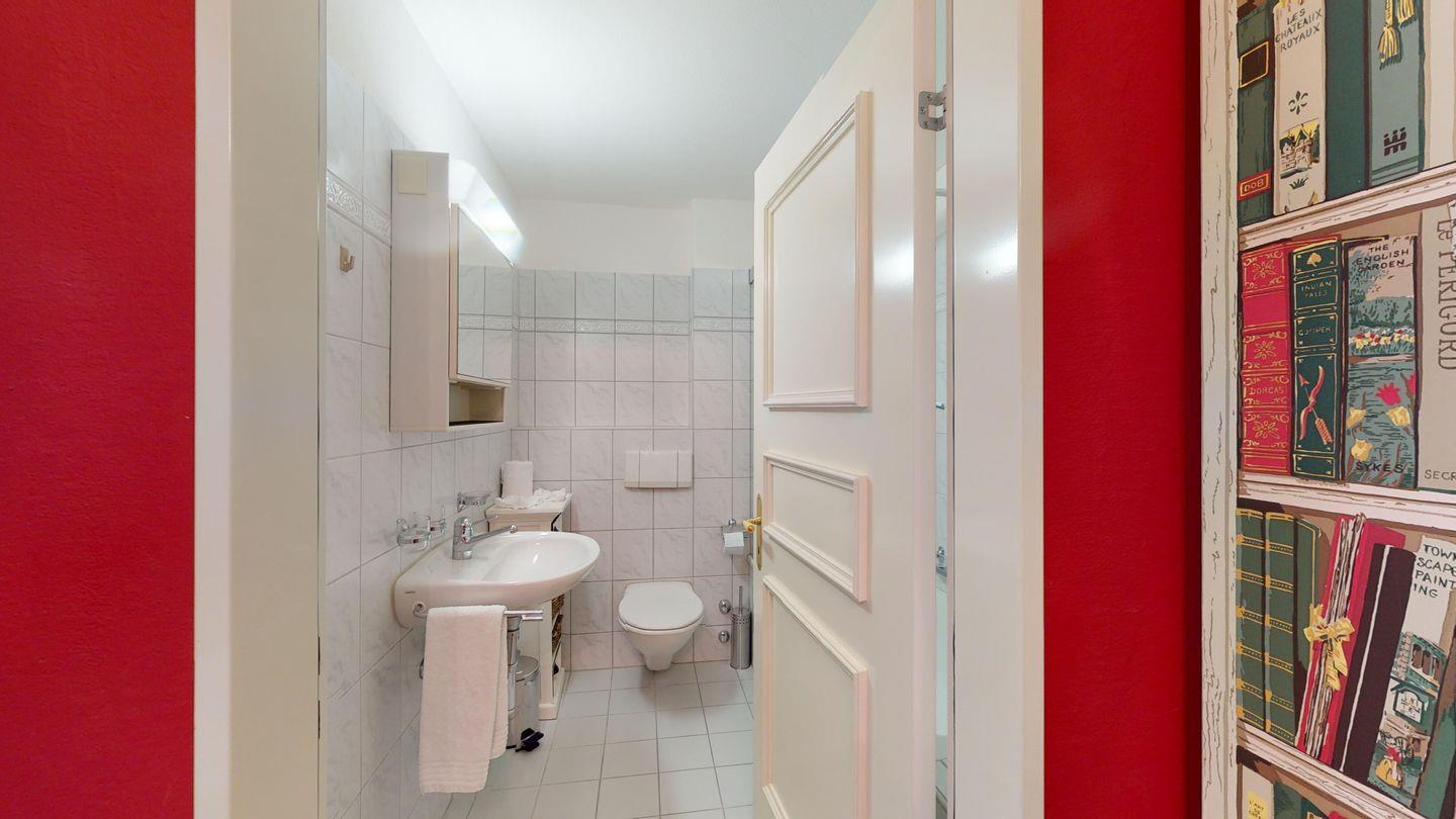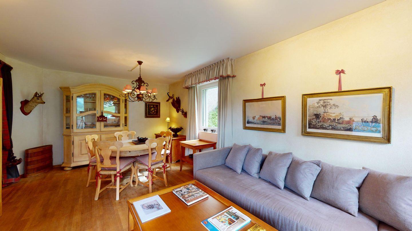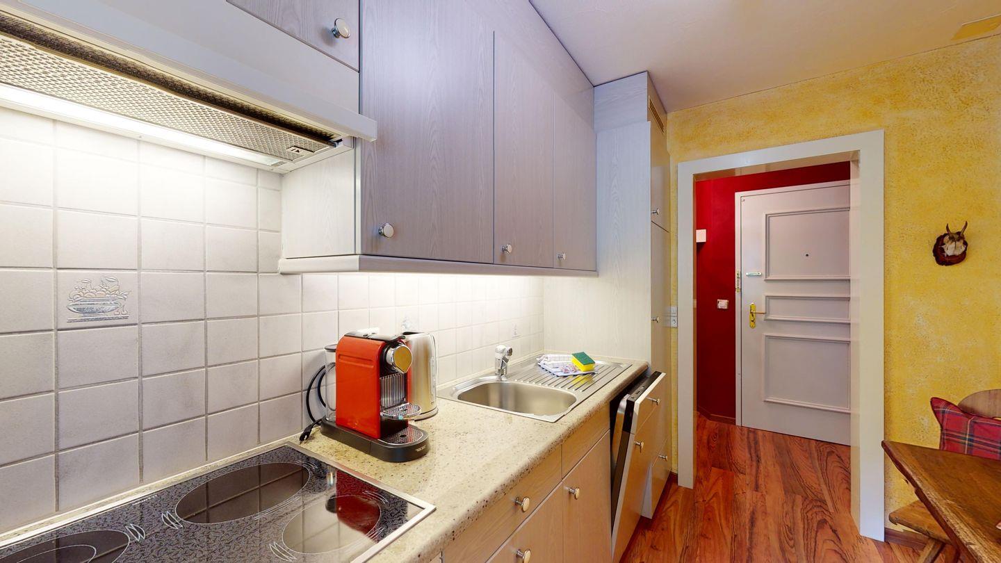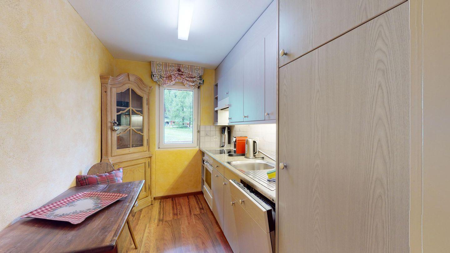 2 ½ Zimmerwohnung im 1. Obergeschoss. Entrée mit Garderobe. Wohn-/Esszimmer mit Ausgang auf den Balkon. Geschlossene Küche mit Ofen, Herd und Geschirrspüler. Ein Doppelschlafzimmer mit Ausgang auf den Balkon. Badezimmer mit WC/Badewanne/Lavabo. Kein Parkplatz vorhanden. Gemeinschaftliche Waschküche. Haustiere sind nicht erlaubt.
