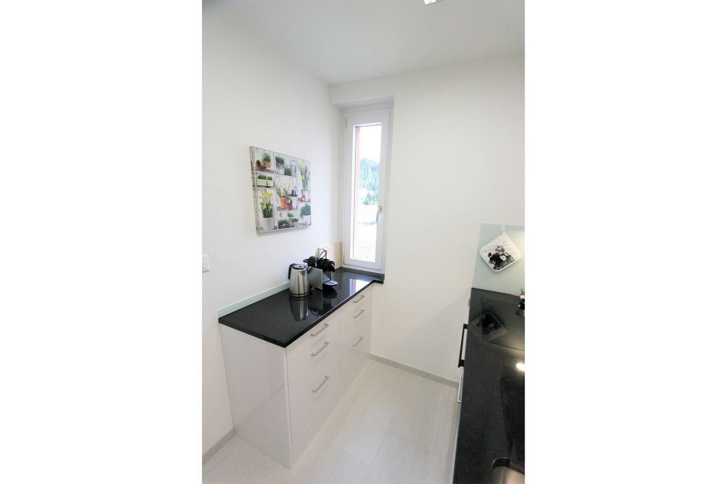 Die Ferienwohnung verfügt über ein helles Wohn- und Esszimmer mit einer Schlafcouch und einem Schrankbett. Es gibt ein Schlafzimmer mit zwei Einzelbetten und ein modernes Badezimmer mit Dusche. Die Küche ist gut ausgestattet und modern. Ein sonniger Balkon auf der Südseite bietet eine teilweise Panoramasicht. WLAN-Internet, TV und Radio stehen kostenlos zur Verfügung.