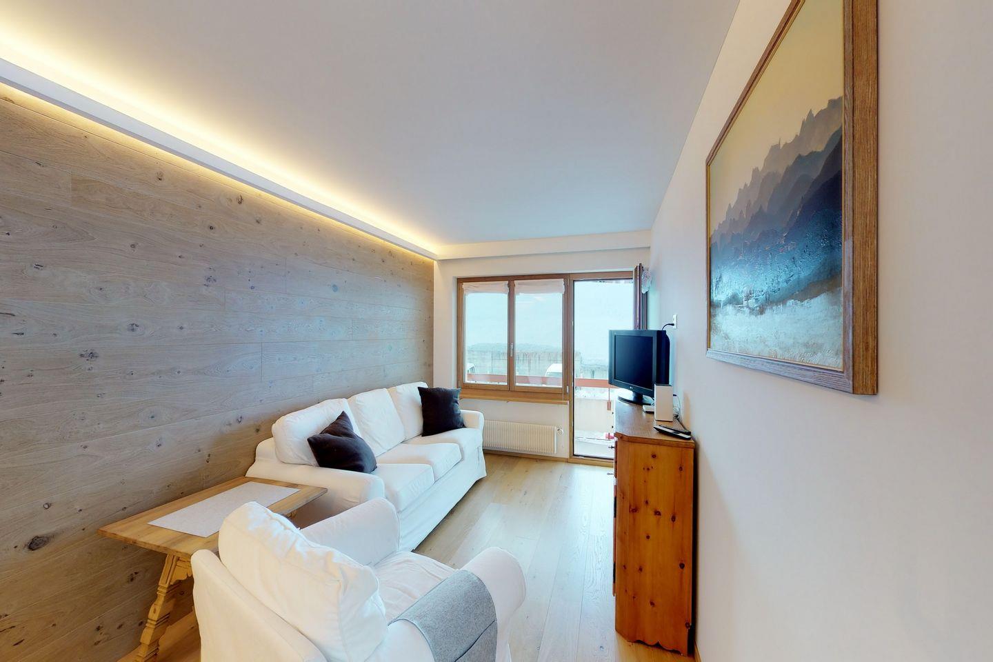 Die Wohnung liegt an zentraler Lage in St. Moritz. Vor dem Haus befinden sich Bushaltestelle, Bäckerei, Apotheke sowie ein grosser Supermarkt. Zum St. Moritzersee sind es ca. 200 Meter zu Fuss.
