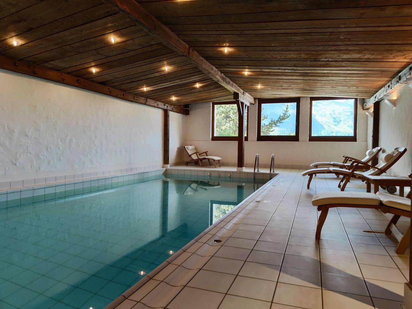 Die Ferienwohnung verfügt über zwei Wohnzimmer, das eine ist mit TV, Sofa und Essbereich ausgestattet und das andere mit einer Küche und Lounge Ecke. Beide Wohnzimmer verfügen über einen direkten Zugang auf die Terrassen/Balkone. Die beiden Schlafzimmer sind je mit einem Doppelbett ausgestattet. Die zwei Badezimmer mit Badewanne oder Dusche. Die Wohnung hat Zugang zu einem hauseigenen Schwimmbad mit Sauna. Von der Garage ( 1 Parkplatz gehört zur Wohnung) erreicht man direkt und bequem die Wohnung. Ein Skiraum steht ebenfalls zur Verfügung. Waschmöglichkeit (Waschmaschine und Tumbler) auf Anfrage verfügbar.