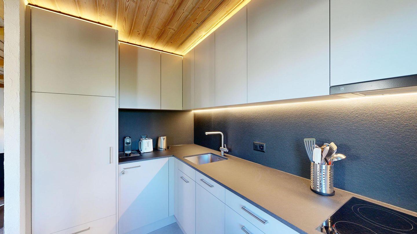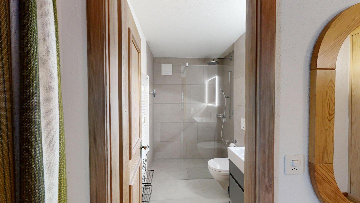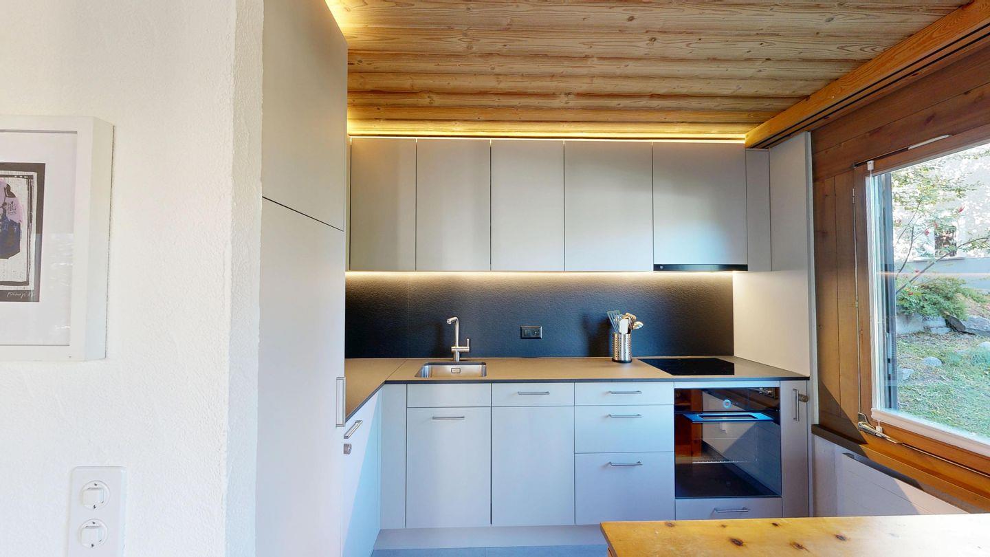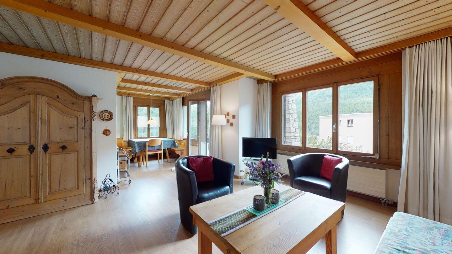 Vor der offenen Küche findet sich ein Sitzplatz mit Esstisch, Eckbank und Stühlen. Die Küche ist komplett eingerichtet und wurde im 2025 komplett saniert. Es steht Ihnen eine Nespresso Kaffeemaschine zur Verfügung. Das Schlafzimmer ist mit einem Doppelbett ausgestattet. Das geräumige und helle Wohnzimmer bietet mit 2 Schlafsofas zusätzlichen Platz für 2 Personen. Das Badezimmer verfügt über eine begehbare Dusche mit Regendusche und wurde im Frühling 2025 komplett renoviert. Zur Wohnung gehört eine Terrasse mit Blick auf die umliegenden Berge. Sunrise-TV und WLAN-Internet sind inbegriffen. Ein reservierter Garagenparkplatz gehört ebenfalls zu der Wohnung. Zur gemeinschaftlichen Nutzung steht ein Skikeller und eine Waschküche mit Waschmaschine und Tumbler zur Verfügung.