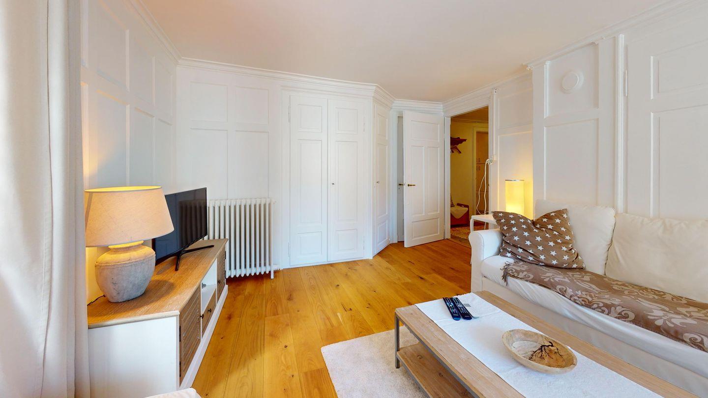 Die Wohnung wurde teilrenoviert und besticht durch den schönen Holzparkettboden und der Fusion von modernen, stylischen und rustikalen Möbeln.