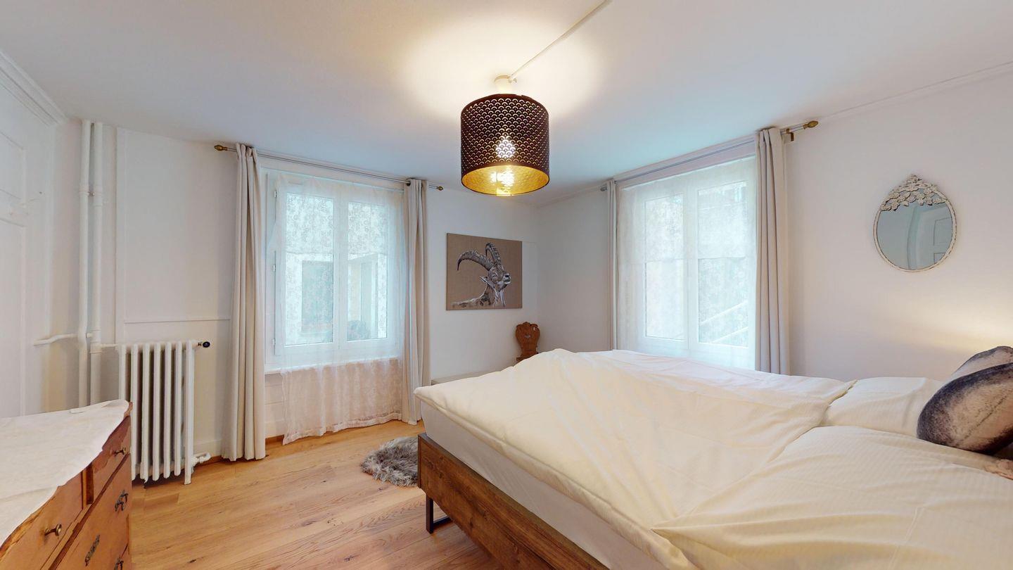 Das Entree dient als Garderobe und Abstellbereich und führt zugleich in die verschiedenen Zimmer. Ein gemütliches Wohnzimmer mit Sofa, Sessel, Salontisch und Fernseher. Kostenloses WLAN-Internet steht zur Verfügung. Zwei Schlafzimmer mit bequemen Doppelbetten und Einbauschränken. Beide Schlafzimmer wurden im Herbst 2023 mit neuen Betten ausgestattet. Die Küche ist funktional und komplett eingerichtet und verfügt über einen Esstisch. Neben der Küche befindet sich ein Abstellraum für Esswaren. Es steht ein Badezimmer mit Badewanne, Waschtisch und WC zur Verfügung.
