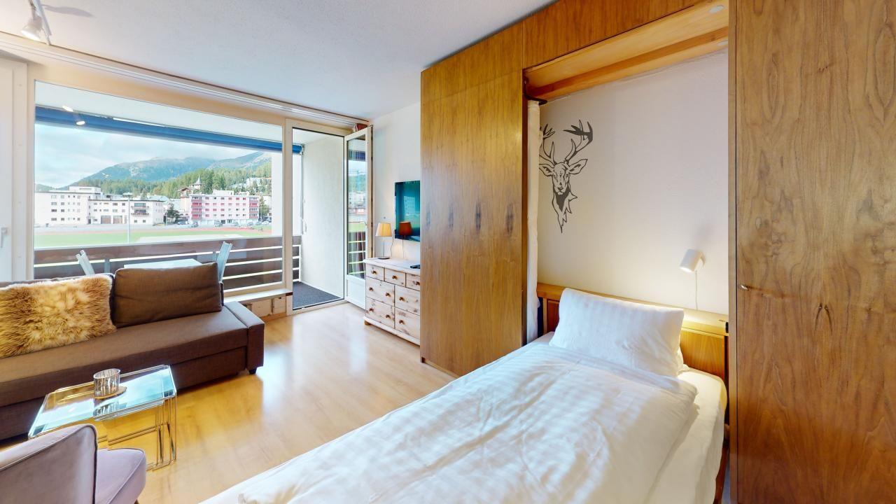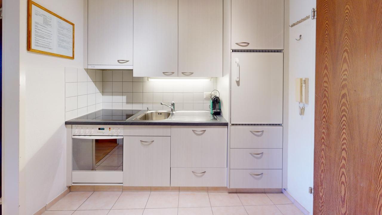 Gemütliche, schön eingerichtete 1-Zimmer-Ferienwohnung im 2. Obergeschoss. Wohn- /Esszimmer mit 2 integrierten Schrankbetten. Überdachter Balkon mit Aussicht. Kleine Küche. Bad mit Dusche. Ein Lift im Ferienhaus erleichtert den Zugang, und im Winter profitieren Sie von einem Parkplatz in einer Garagenbox. Im Sommer verfügen Sie über einen nicht reservierten Aussenparkplatz. Für aktive Gäste steht ein Fitnessraum zur öffentlichen Nutzung im Ferienhaus zur Verfügung.