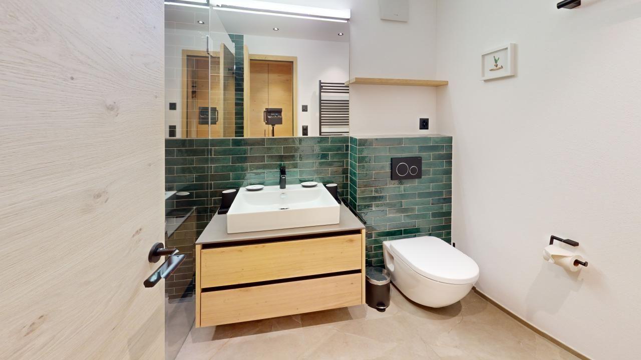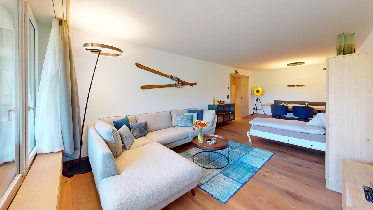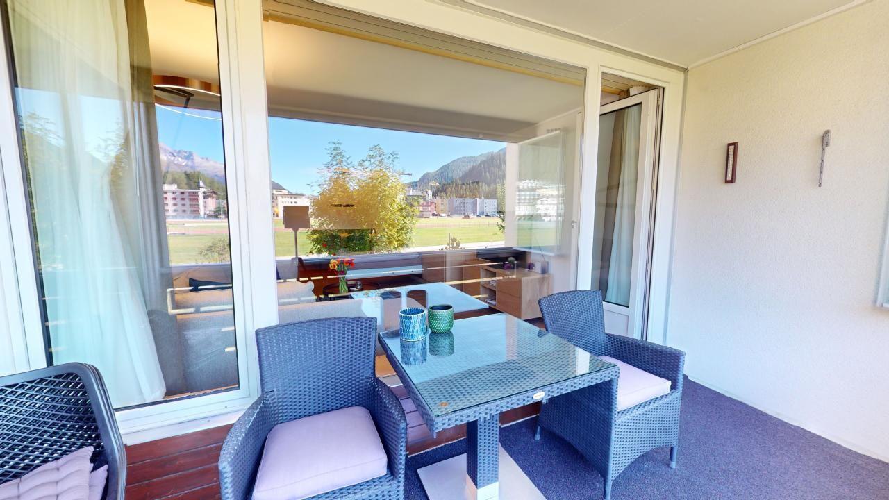 Diese neu renovierte, grosszügige 2.5 - Zimmer-Ferienwohnung im Hochparterre verbindet stilvolles Wohnen mit dem perfekten Ferienerlebnis in St. Moritz. Mit auserlesenen Materialien und einem durchdachten Design bietet diese Wohnung alles, was man für einen komfortablen und entspannten Ferienaufenthalt benötigt. Eingang mit moderner Küche und Garderobe. Trendiges Wohn- /Esszimmer mit 2 Klappbetten (90x190cm). Gedeckter Balkon zum Verweilen mit Verglasung. Helles mit Holz verkleidetes Doppelschlafzimmer. Beschränkte Anzahl Aussenparkplätze (max. 1 Auto/Wohnung, nicht reserviert). Fitnessraum zur öffentlichen Nutzung befindet sich im Ferien-Wohnhaus.