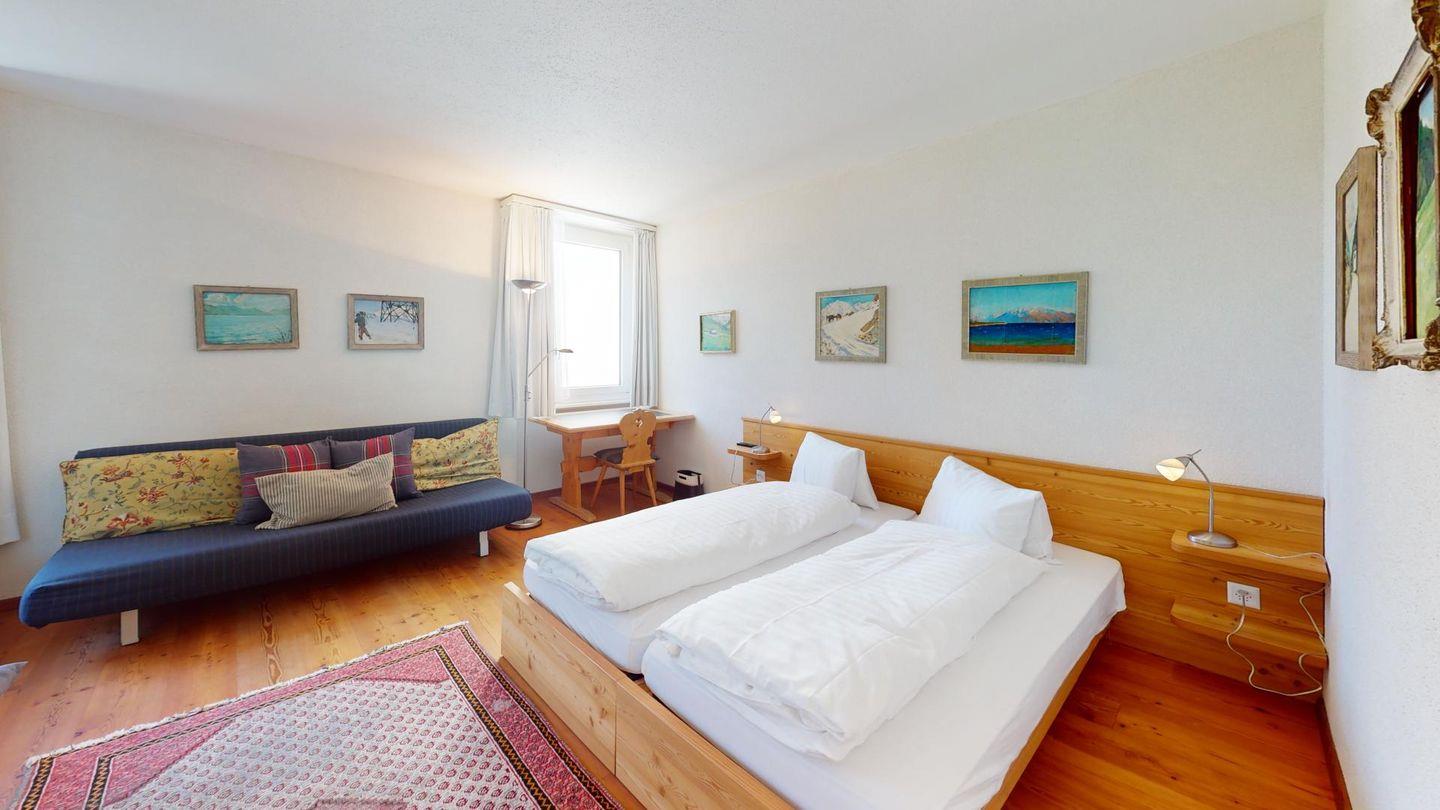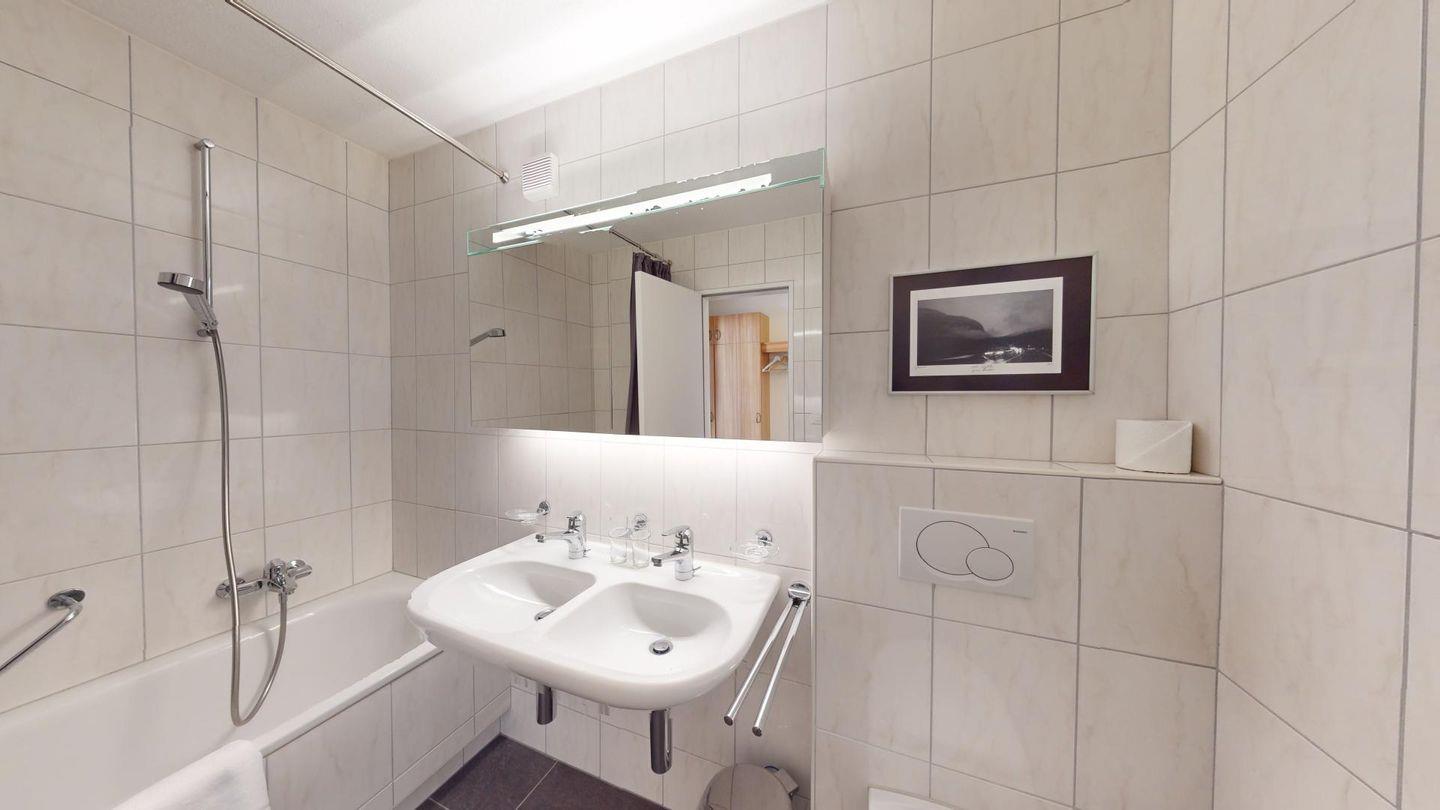 Willkommen in der attraktiven, grosszügigen 2.5 - Zimmer Ferienwohnung im 1. Obergeschoss: Eingang mit Küche. Wohn- /Esszimmer mit praktischem Ausziehbetten. Überdachter Balkon. Bad/Dusche/WC. Separates Schlafzimmer mit Doppelbett und Sofa. Im Ferienhaus befindet sich ein Lift. Beschränkte Anzahl Aussenparkplätze (max. 1 Auto/Wohnung, nicht reserviert). Fitnessraum zur öffentlichen Nutzung befindet sich im Ferien-Wohnhaus.