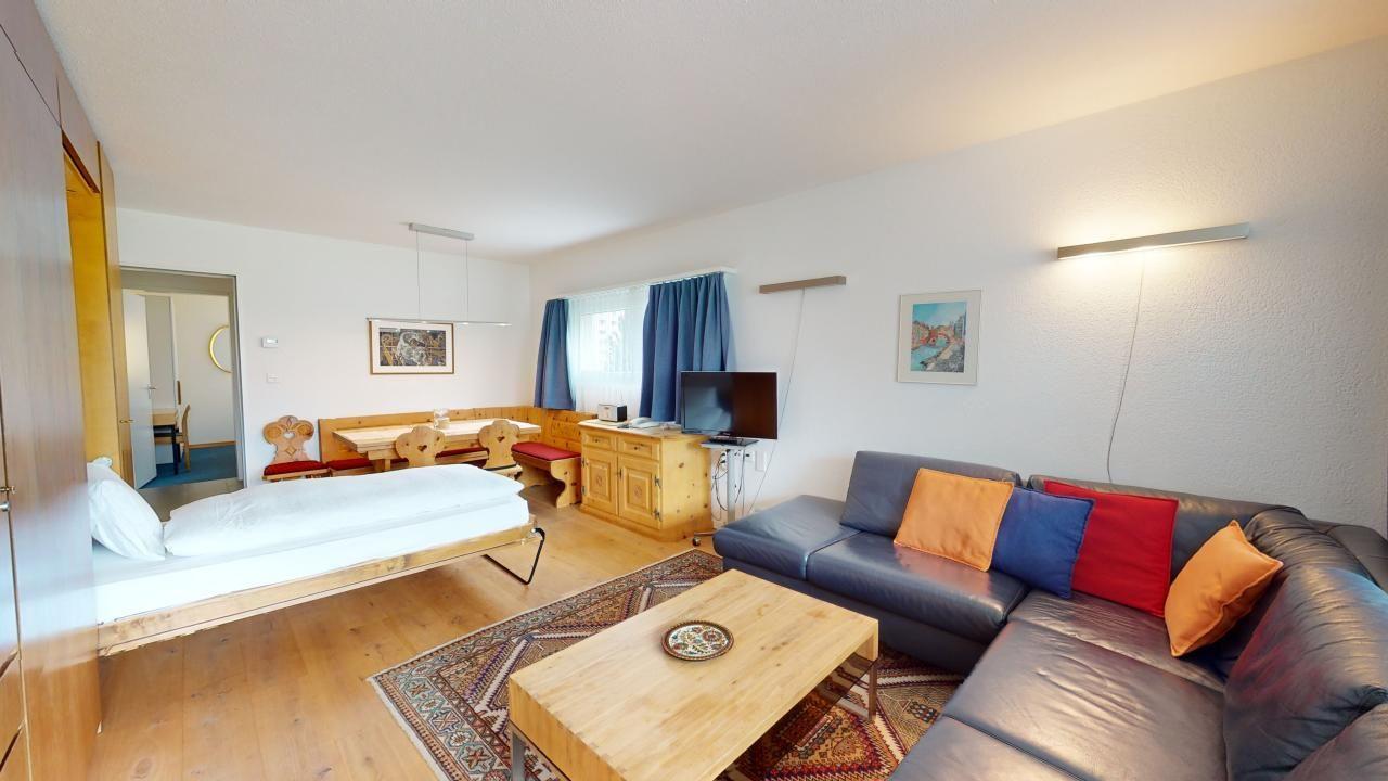 Entdecken Sie diese ansprechende und großzügige 2,5-Zimmer-Ferienwohnung im 1. Stock. Der Eingangsbereich mit Garderobe führt Sie in die separate Küche, die mit einem Esstisch und einem herrlichen Blick auf den St. Moritzersee ausgestattet ist. Das lichtdurchflutete Eckwohnzimmer bietet sowohl einen Wohn- als auch einen Essbereich mit zwei praktischen Klappbetten. Direkt anschliessend gedeckter Balkon mit Verglasung. Die Wohnung verfügt zudem über ein separates Schlafzimmer sowie ein modernes Badezimmer mit Dusche, Lavabo und WC. Ein Lift im Ferienhaus erleichtert den Zugang. Ein Lift im Ferienhaus erleichtert den Zugang, und Sie profitieren von einem Parkplatz in einer Garagenbox. Für aktive Gäste steht ein Fitnessraum zur öffentlichen Nutzung im Ferienhaus zur Verfügung.