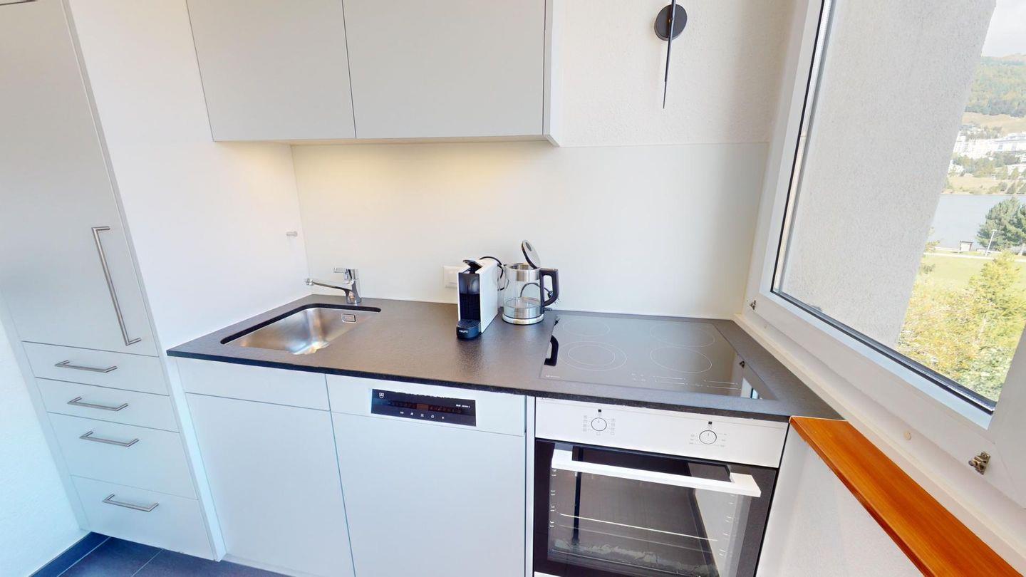 Entdecken Sie diese einladende 2.5 - Zimmerwohnung im 3. Stock, die ideal für Ihre nächsten Ferien ist. Der Eingangsbereich mit Garderobe führt Sie in die separate Küche, die mit einem Esstisch und einem herrlichen Blick auf den St. Moritzersee ausgestattet ist. Das gemütliche Eckwohnzimmer bietet sowohl einen Wohn- als auch einen Essbereich mit einem Sofadoppelbett. Gedeckter Balkon (Wintergarten). Das grosszügige Badezimmer ist mit Badewanne, Dusche und WC ausgestattet. Die Wohnung verfügt zudem über ein separates Schlafzimmer. Ein Lift im Ferienhaus erleichtert den Zugang, und im Winter profitieren Sie von einem Parkplatz in einer Garagenbox. Im Sommer verfügen Sie über einen nicht reservierten Aussenparkplatz. Fitnessraum zur öffentlichen Nutzung befindet sich im Ferien-Wohnhaus.