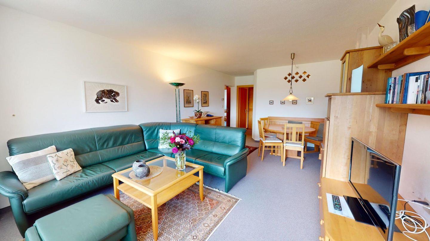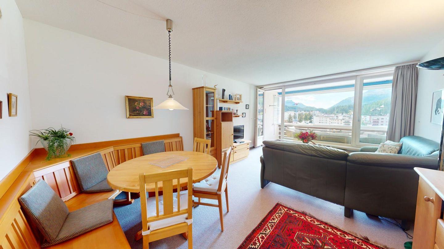 Interessante 4.5 - Zimmerwohnung im obersten Stock des Ferienhauses Residenz am See. Das Spezielle an dieser Wohnung ist die separate, auf dem gleichen Stock befindende, grosszügige Küche mit Esstisch und fantastischer Sicht auf den St. Moritzersee und St. Moritz Dorf. Diese Einrichtung kann durchaus Vorteile haben. Die Hauptwohnung besteht aus einem geräumigen Wohn- /Esszimmer mit gedecktem Balkon und Windschutz. 1 grosszügiges Doppelschlafzimmer sowie 1 Schlafzimmer mit 2 separaten Betten. 1 Bad/DU/WC sowie 1 DU/WC. Im Ferienhaus befindet sich ein Lift. 1 Parkplatz in Garagenbox. Für zusätzliche Entspannung und Fitness steht den Gästen ein Fitnessraum im Apartmenthaus zur Verfügung.