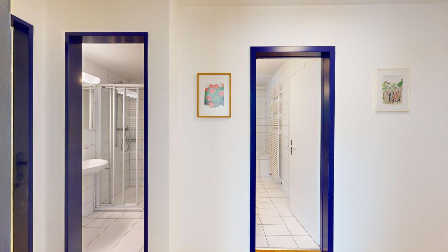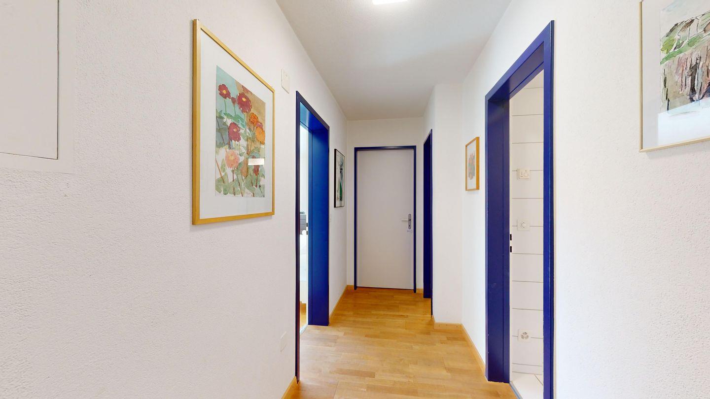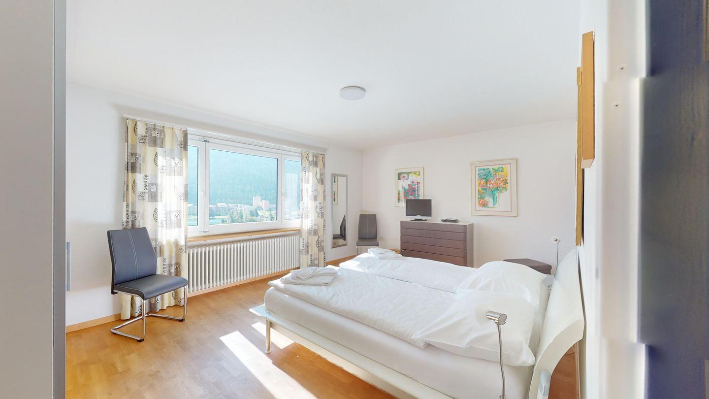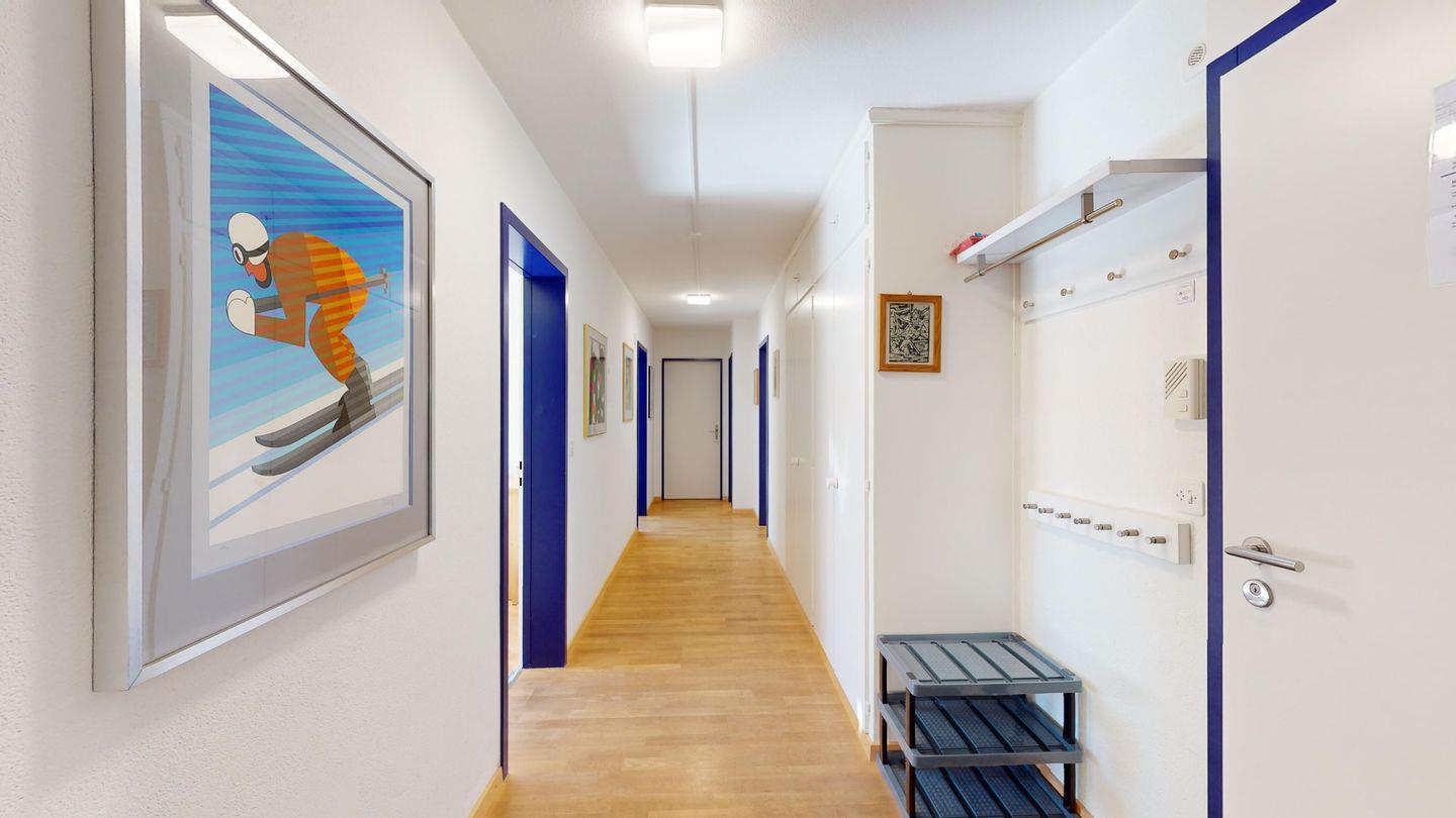 3-Zimmerwohnung im 3. Stock, ca. 97 m2. Entree mit Garderobe. Wohn-/Esszimmer mit herrlichem Seeblick, neue Küche mit Ofen, Kühlschrank, Kaffeemaschine Chicco d'Oro und Abwaschmaschine. Ein grosses Doppelzimmer und ein sehr grosses Doppelzimmer, beide mit Seeblick. Bad/WC/Lavabo. Dusche/WC/Lavabo. Internet, Radio, TV, DVD und Telefon. Neue, komfortable Einrichtung. Gedeckter Aussenparkplatz im Nebenhaus. Skiraum und Waschküche zur gemeinsamen Benützung. Haustiere sind nicht erlaubt.