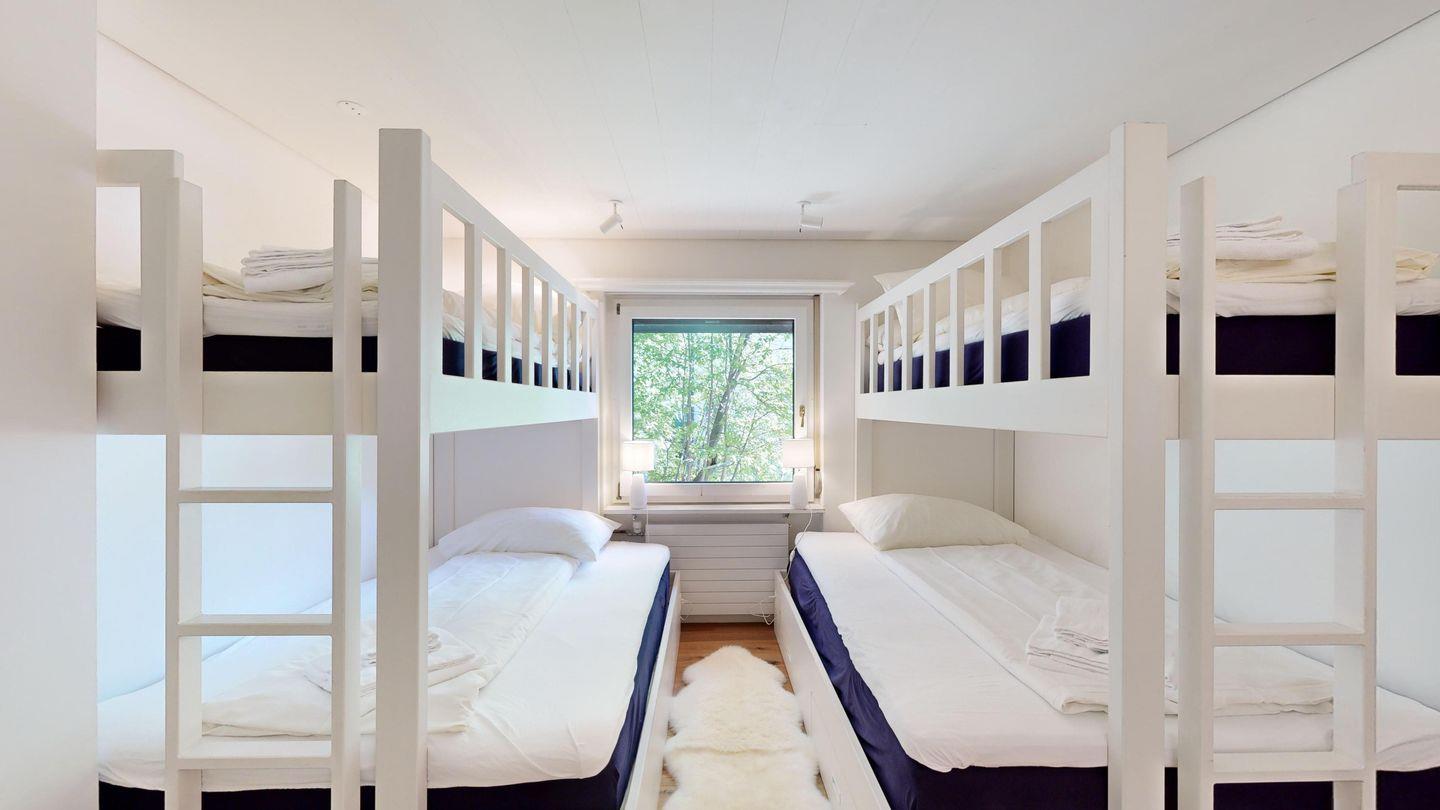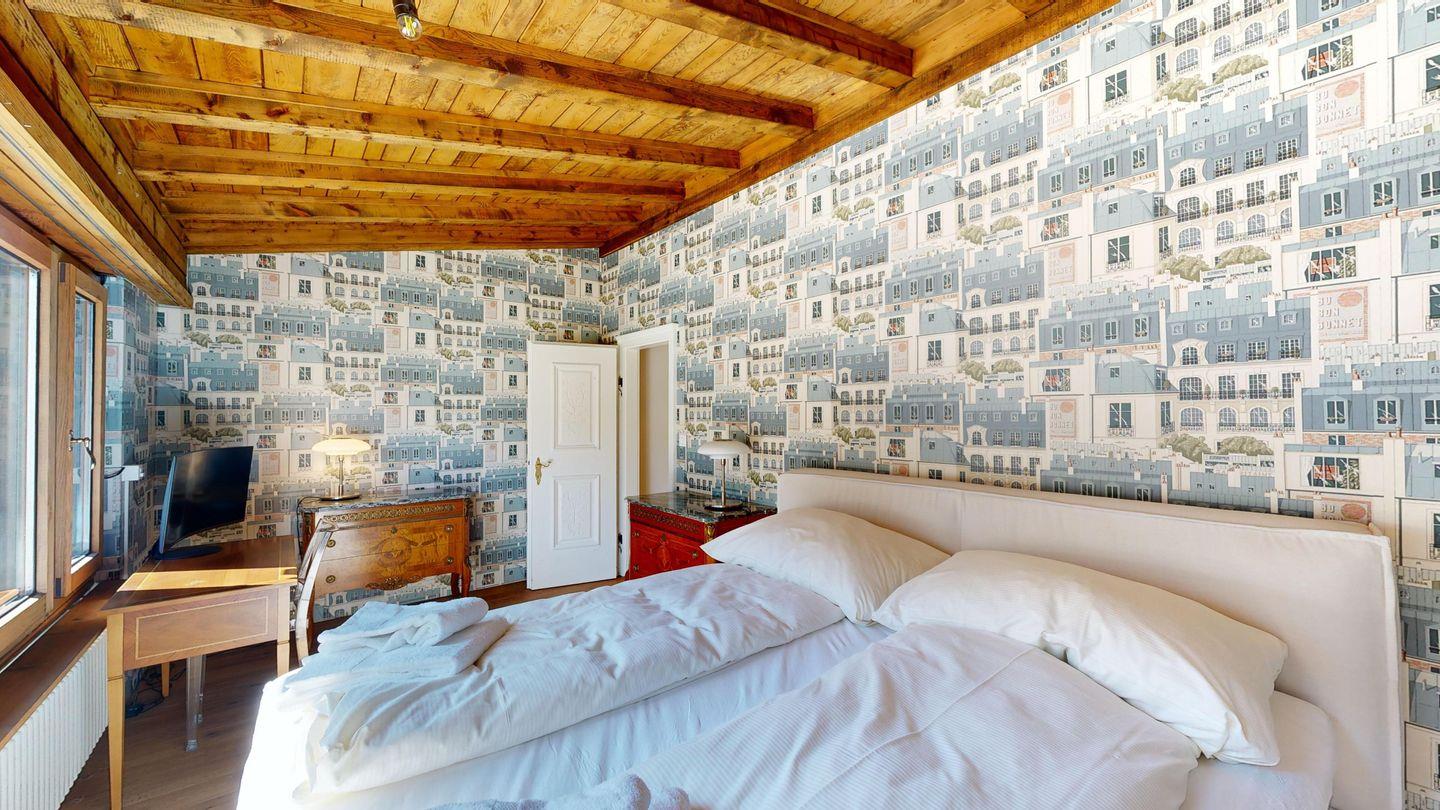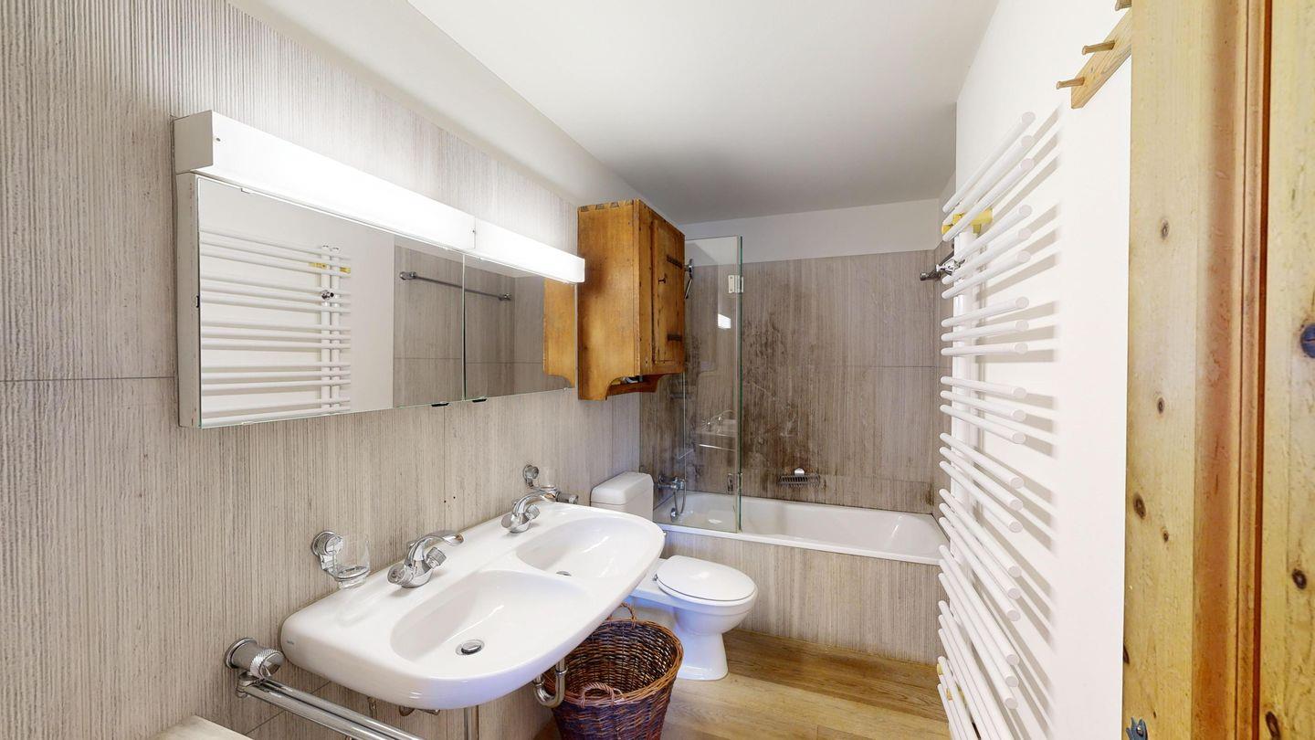 Die moderne 5.5-Zimmer-Wohnung befindet sich in unmittelbarer Nähe zur Talstation des Skigebiets Corviglia und bietet Platz für bis zu sechs Personen. Die Wohnung verfügt über zwei Schlafzimmer mit Doppelbetten, von denen eines mit einem En-Suite-Badezimmer mit Badewanne ausgestattet ist. Ein drittes Schlafzimmer bietet zwei hochwertige Etagenbetten. Ein weiteres Badezimmer mit Dusche sowie ein separates Gäste-WC sorgen für zusätzlichen Komfort.