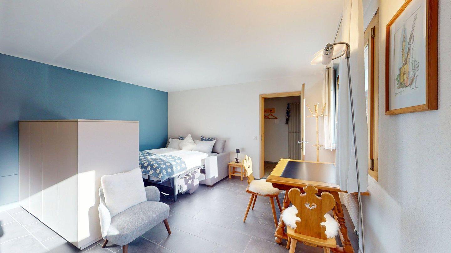 Stilvoll eingerichtete 1-Zimmerwohnung im Hochparterre. Das liebevoll gestaltete Wohn- und Esszimmer ist mit hochwertigen Möbeln sowie einem komfortablen Sofabett ausgestattet und bietet ein gemütliches Ambiente. Von der Terrasse aus geniessen Sie eine atemberaubende Aussicht auf St. Moritz und die umliegende Berglandschaft. Die Wohnung verfügt über eine kleine, gut ausgestattete Küche, ein Bad mit Badewanne und Dusche sowie eine eigene Waschmaschine. Ein Garagenplatz ist ebenfalls vorhanden.