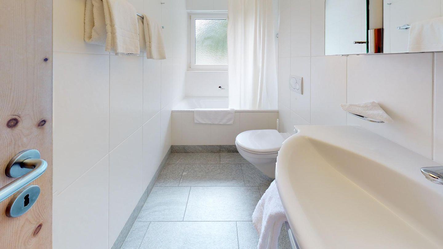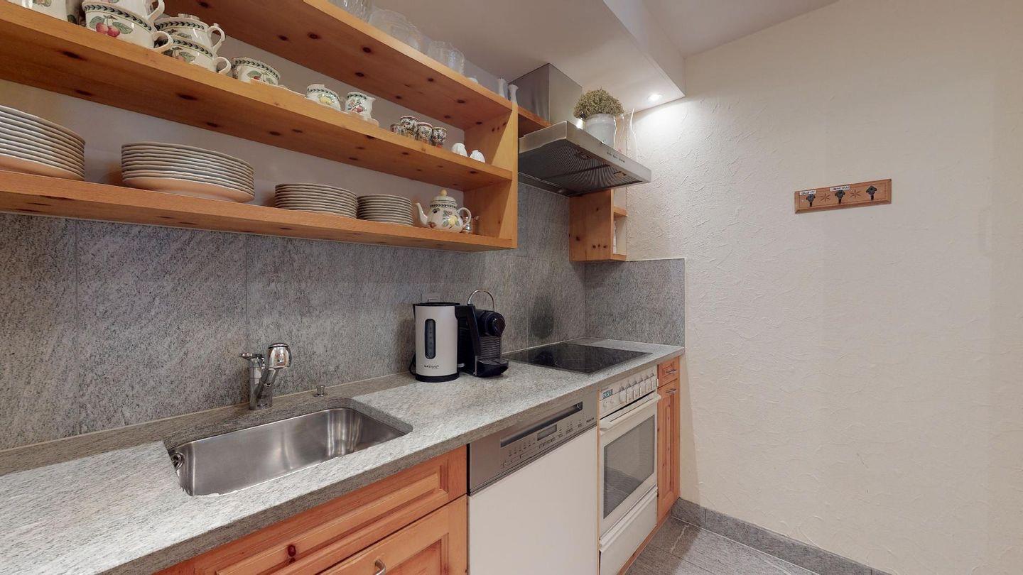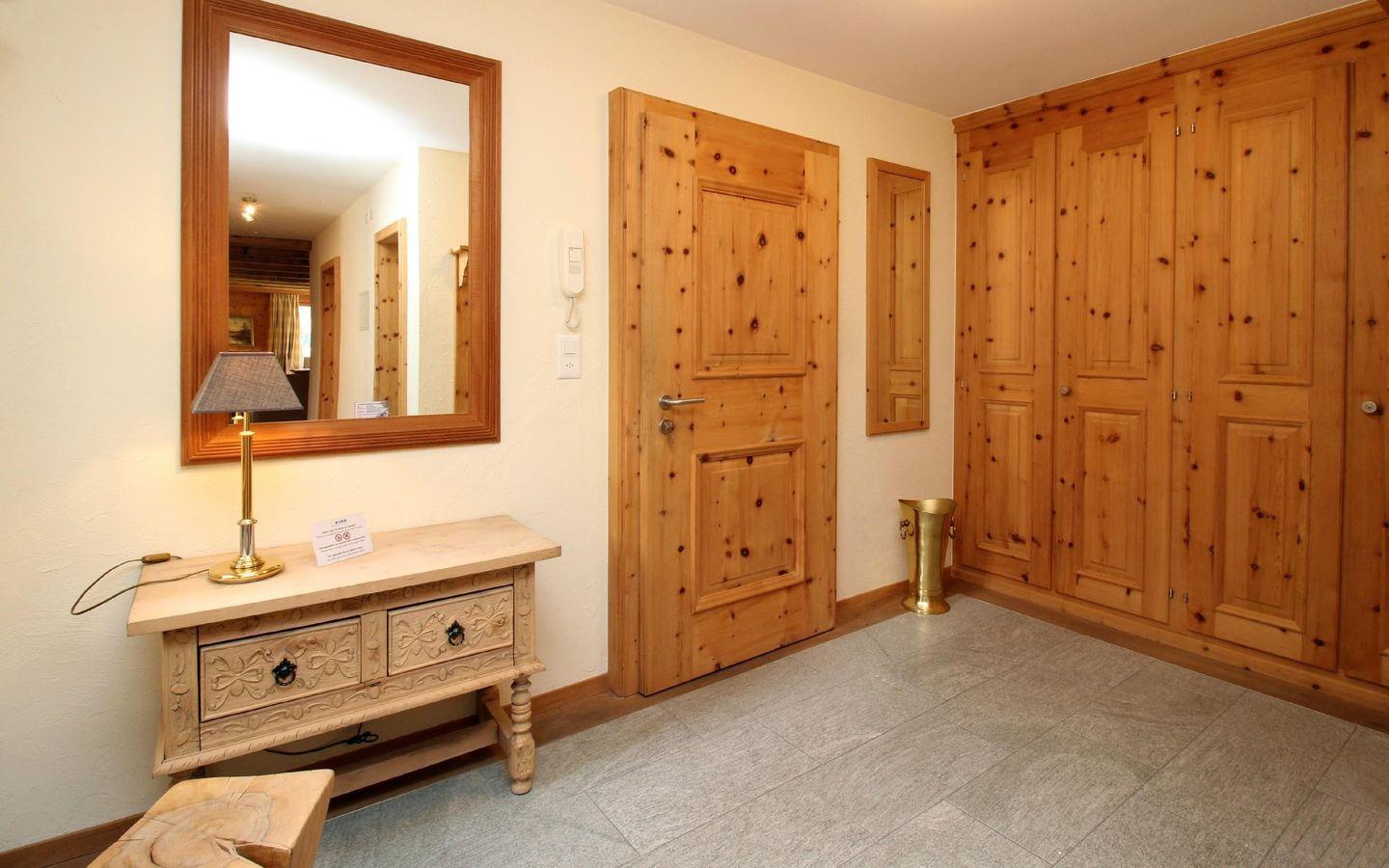 Die 4- Zimmer Ferienwohnung ist sehr stilvoll und hochwertig mit einheimischem Arvenholz und Naturstein eingerichtet. Grosszügiges Wohn- /Esszimmer mit Kamin, Südbalkon. Moderne, gut ausgestattete Küche mit Backofen, 1 Doppelschlafzimmer mit Bad/DU. 2 Schlafzimmer mit je 2 separaten Betten. 1 DU/WC. Waschmaschine, Tumbler zur Mitbenützung. Parkplatz.