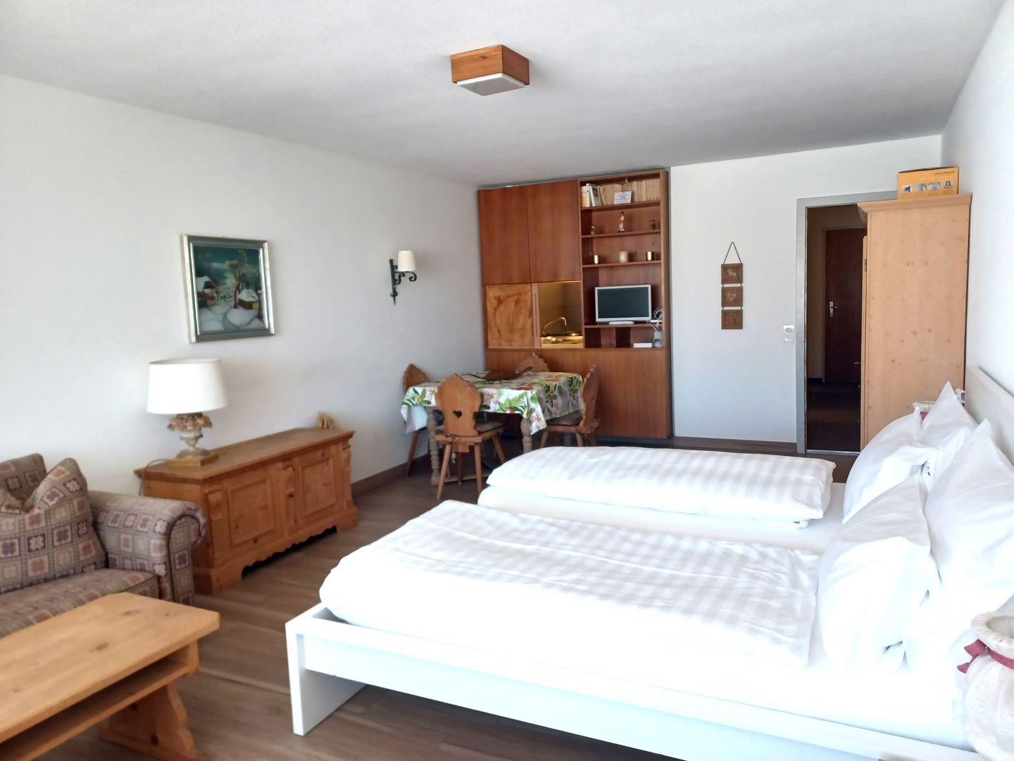 Freundliche Ferienwohnung im 5. Stock mit super Aussicht Richtung St. Moritz-Dorf. Zirka 40 m2. Wohn- /Esszimmer mit Balkon. Separate Küche ohne GS, Dusche/WC. Lift.