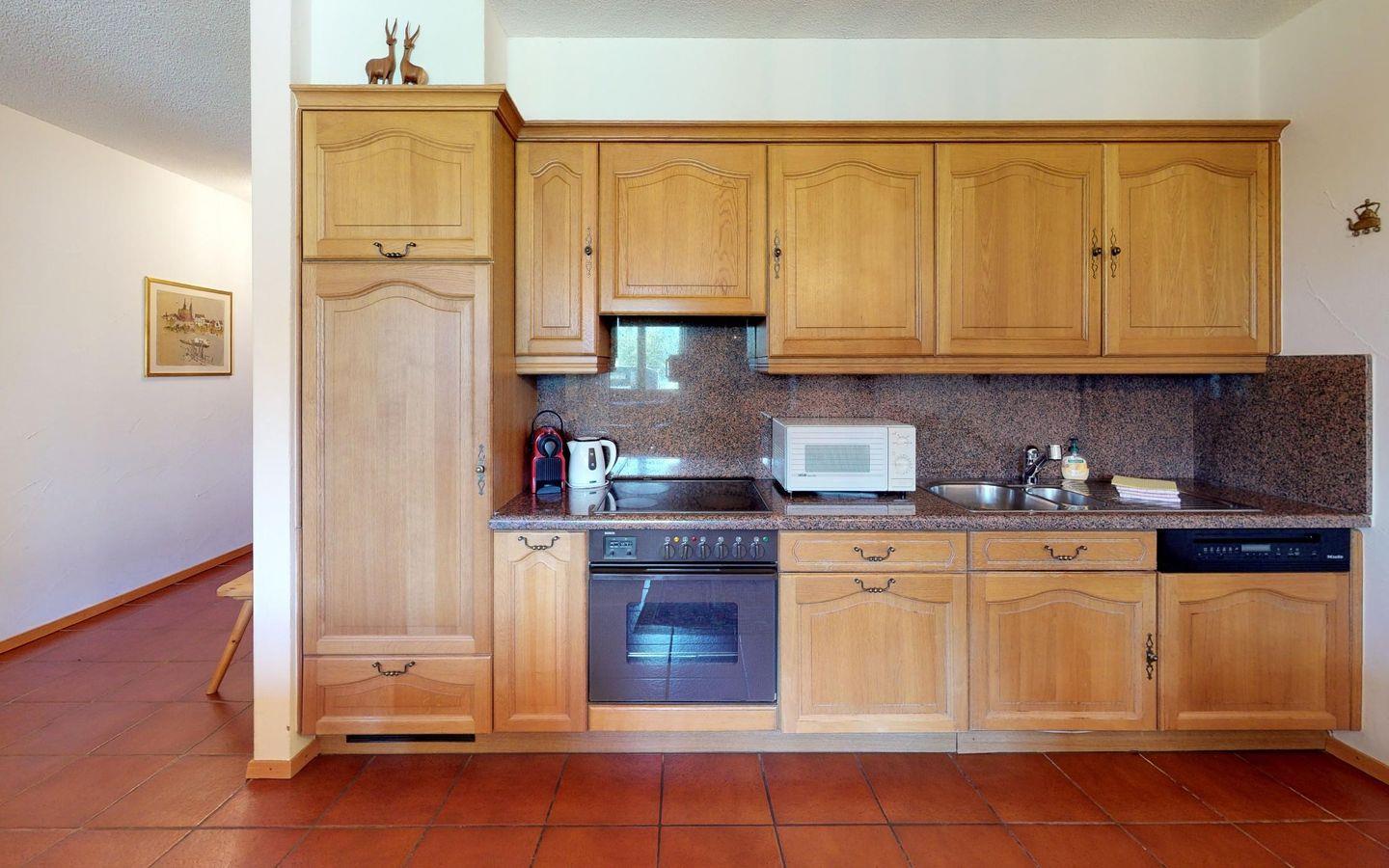 Gemütliches Ferienapartment mit Seesicht. Wohn- /Esszimmer mit offener Küche und Balkon. Elternschlafzimmer mit direktem Zugang zum Bad / WC. Doppelschlafzimmer mit separaten Betten. Garage Nr. 9, Lift. Gratis WLAN.