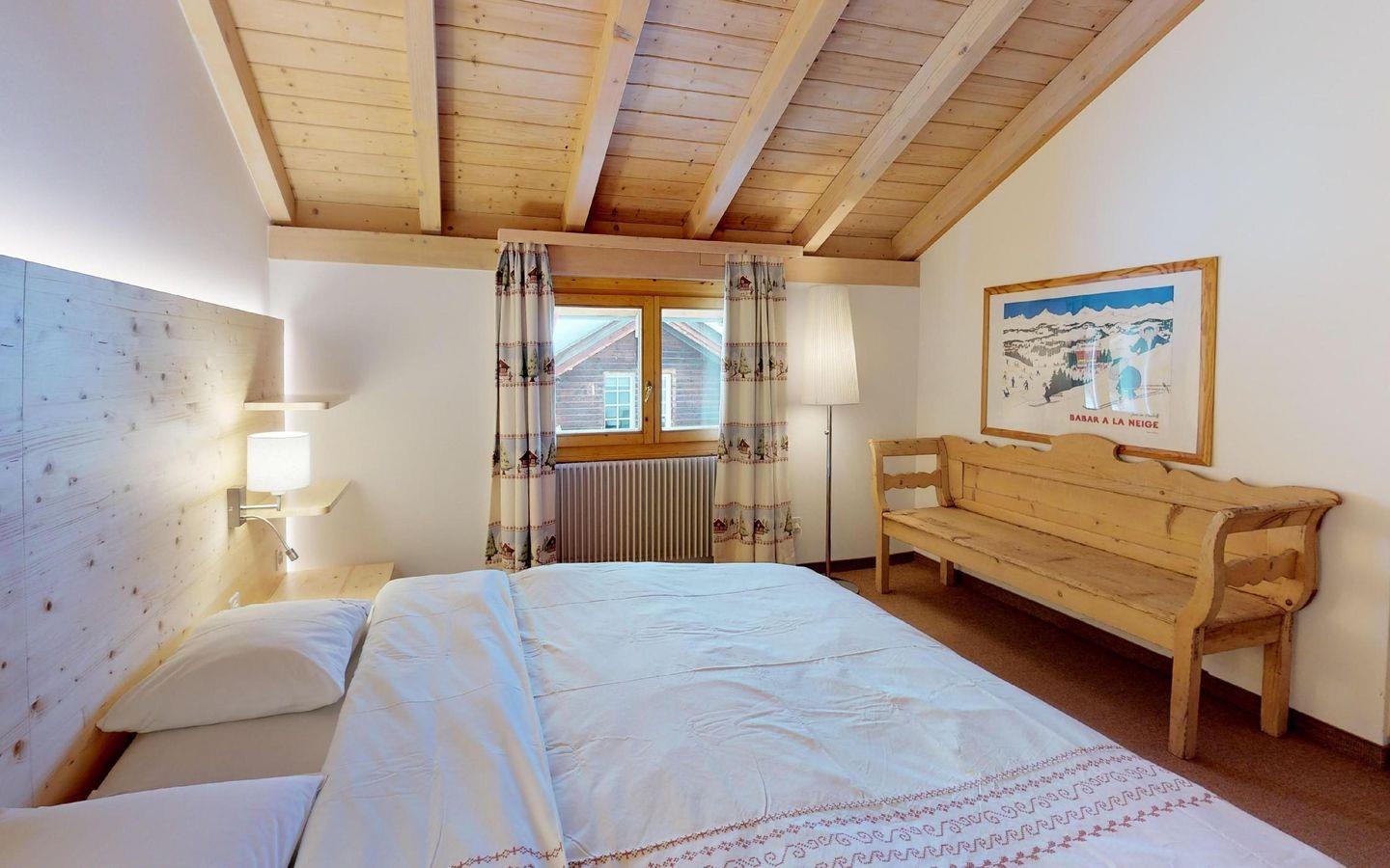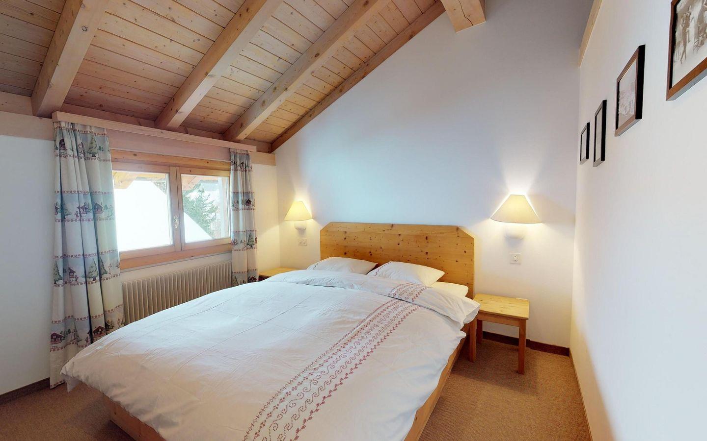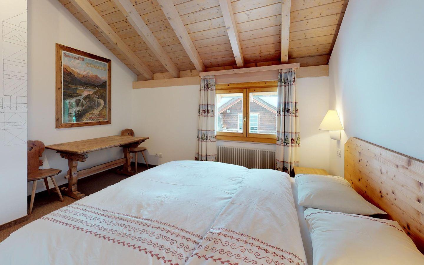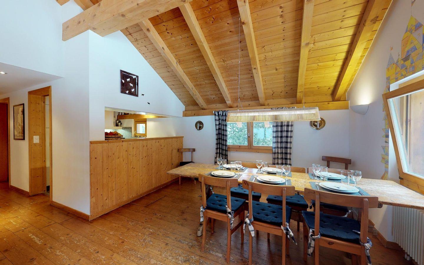 Rustikal eingerichtete 4.5 - Zimmer Ferienwohnung im Dachgeschoss, 3. Stock. Wohn- /Esszimmer mit Kamin - Cheminee und Balkon. Separate Küche. 3 Schlafzimmer wovon 1 kleines Schlafzimmer mit Kajüttenbetten, eher für Kinder geeignet. 2 Bäder, Dusche/WC. Zur Ferienwohnung gehört 1 Garagenplatz. In dieser Unterkunft sind Haustiere nicht gestattet.