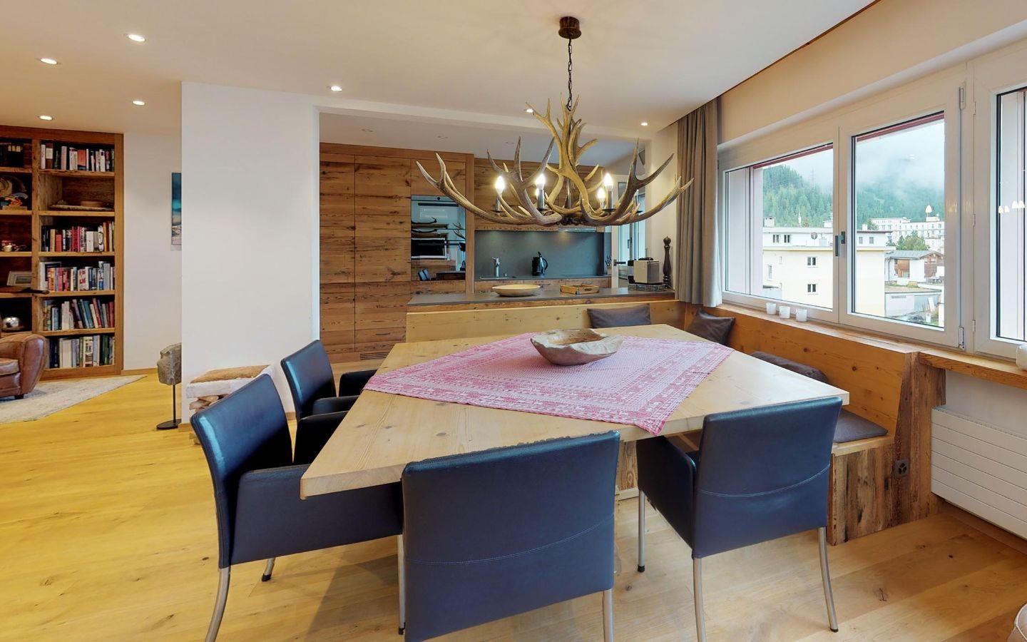 Luxuriöse im "mountainstyle" renovierte 4 - Zimmerwohnung im obersten Geschoss des Polo Ferienhauses. Schöne Aussicht. Grosszügiges Wohn- /Esszimmer. Offene Küche. 2 Doppelschlafzimmer sowie 1 Schlafzimmer mit Etagenbetten. 1 Bad / WC sowie 1 Dusche / WC. 2 reservierte Aussenabstellplätze.