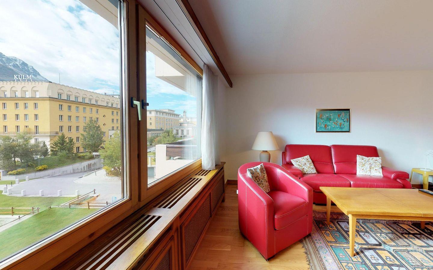 Zentral gelegenes Apartmenthaus, zirka 6 Gehminuten von St. Moritz Dorf und der Corvigliabahn entfernt. Schöne Aussicht. Im Sommer erreichen Sie den wunderschönen 9-Loch Pitch and Putt Golfplatz Kulm in 5 Gehminuten.