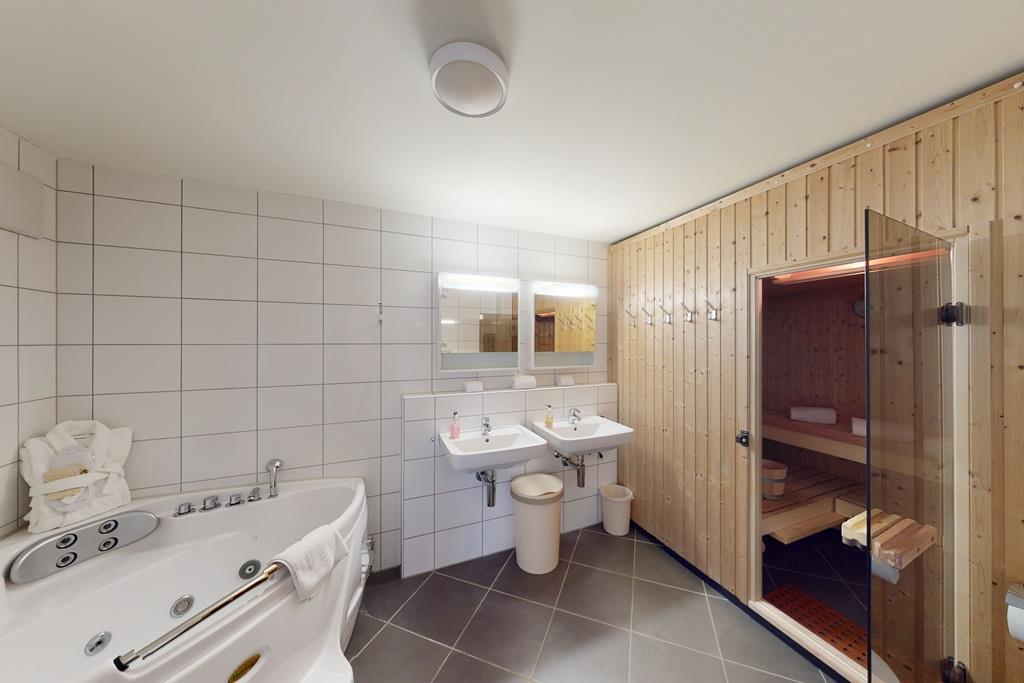 The holiday apartment has 3 bedrooms with 2 single beds each a bathroom with shower, bath, toilet, washbasin and sauna a separate toilet with washbasin a separate shower with washbasin a fully equipped kitchen with Nespresso capsule machine a balcony with a breathtaking view of the lake Interior & technical equipment