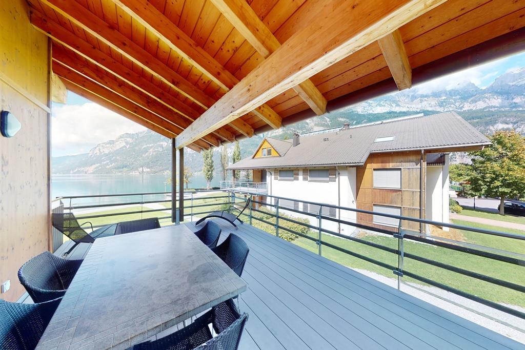 Walensee House & Apartments - directly on Lake Walen "Home is where you feel good and are treated well". The location on Lake Walen is breathtaking and offers an incredible view of the majestic Churfirsten peaks above Lake Walen. On the grounds of Resort Walensee there is a restaurant, a café and a sports shop with a wide selection of sports equipment, clothing and accessories. Last but not least, the SeeJet cable car is just a few steps away and takes you to the skiing, biking and hiking area of Flumserberg. In summer, after a hike in the mountains, the beautiful beach at Lake Walen invites you to swim and linger. So the holiday apartment of your choice is the ideal starting point for a few days' holiday for those seeking peace and quiet, for active people, for connoisseurs but also for families. We are pleased to announce the partnership with Tennis Club Terza. All apartment owner and guests of Walensee House & Apartments will be able to play tennis for free during their stay in one of our apartments. Details of the individual apartment 7x Comfort apartment (4-6 persons) with terrace 5x Deluxe apartment (4 - 6 persons) with terrace 5x Deluxe Penthouse (4 - 6 persons) with terrace 6x Penthouse apartment (6 - 8 persons) with terrace Interior