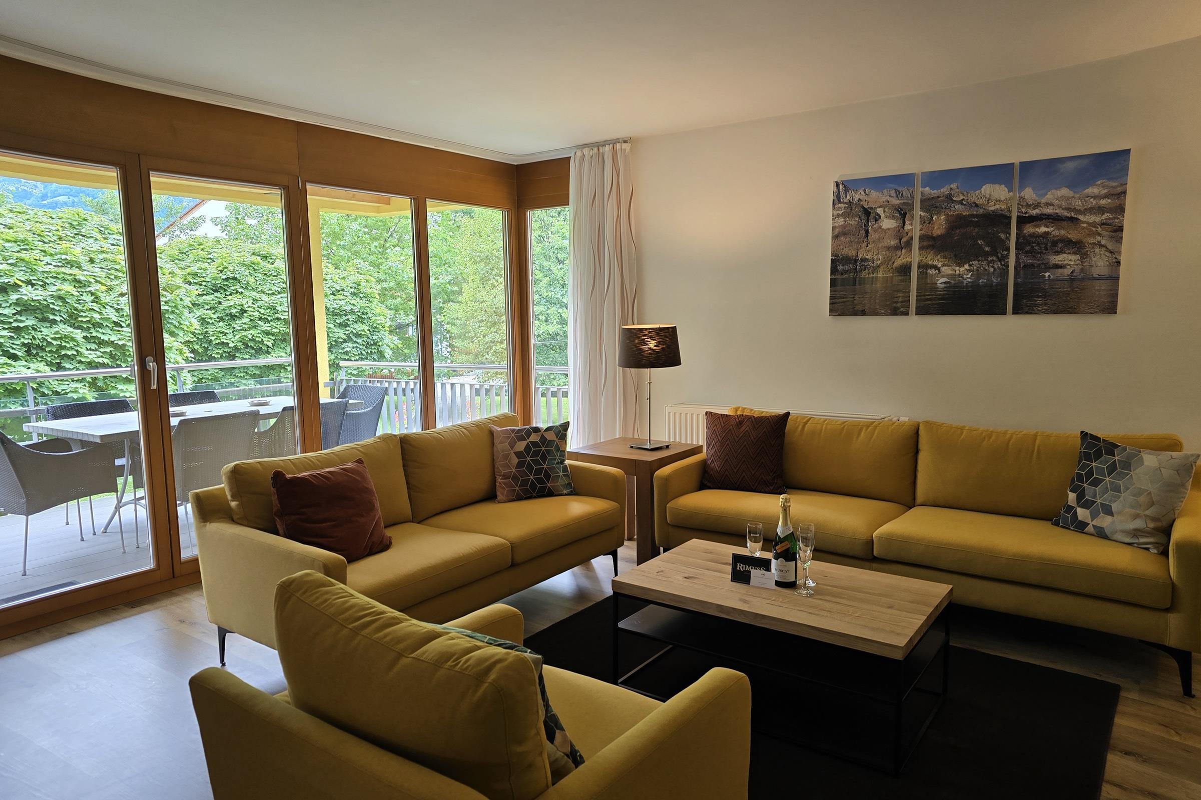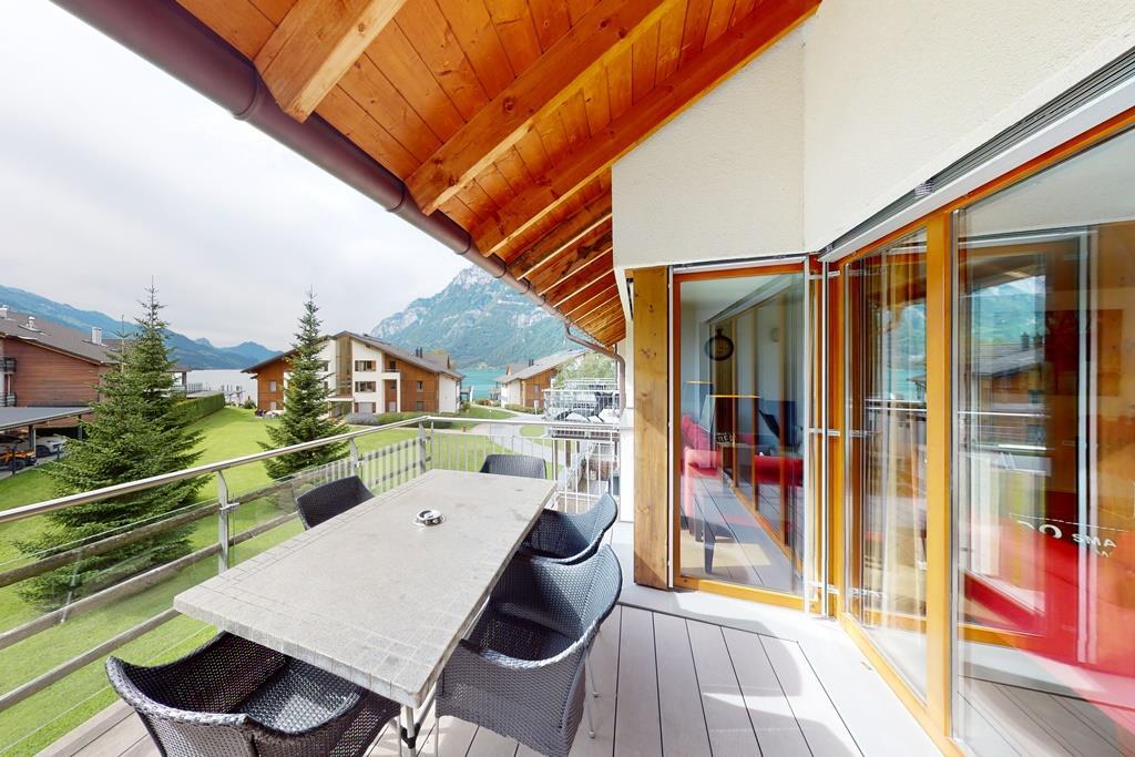 Walensee House & Apartments - directly on Lake Walen "Home is where you feel good and are treated well". The location on Lake Walen is breathtaking and offers an incredible view of the majestic Churfirsten peaks above Lake Walen. On the grounds of Resort Walensee there is a restaurant, a café and a sports shop with a wide selection of sports equipment, clothing and accessories. Last but not least, the SeeJet cable car is just a few steps away and takes you to the skiing, biking and hiking area of Flumserberg. In summer, after a hike in the mountains, the beautiful beach at Lake Walen invites you to swim and linger. So the holiday apartment of your choice is the ideal starting point for a few days' holiday for those seeking peace and quiet, for active people, for connoisseurs but also for families. We are pleased to announce the partnership with Tennis Club Terza. All apartment owner and guests of Walensee House & Apartments will be able to play tennis for free during their stay in one of our apartments. Details of the individual apartment 7x Comfort apartment (4-6 persons) with terrace 5x Deluxe apartment (4 - 6 persons) with terrace 5x Deluxe Penthouse (4 - 6 persons) with terrace 6x Penthouse apartment (6 - 8 persons) with terrace Interior
