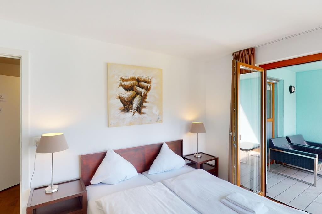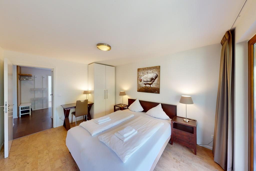 The holiday apartment has2 bedrooms with 2 single beds eacha bathroom with bath/shower, toilet and washbasina separate toilet with washbasina fully equipped kitchen with Nespresso capsule machinea balcony with mountain view and partly lake viewInterior & technical equipment