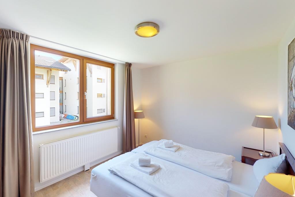 The holiday apartment has2 bedrooms with 2 single beds eacha bathroom with bath/shower, toilet and washbasina separate toilet with washbasina fully equipped kitchen with Nespresso capsule machinea balcony with mountain view and partly lake viewInterior & technical equipment