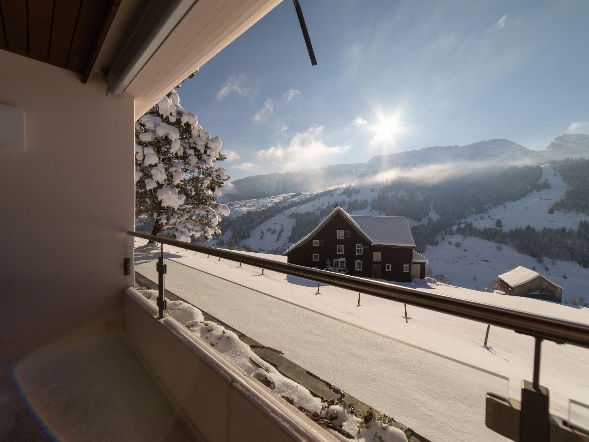 "Panorama Blick", 2-room apartment 71 m2, on the ground floor. Object suitable for 4 adults. 1 room with 1 double bed and open-hearth fireplace. Living room with 1 sofabed and 1 pull-out bed. Kitchen (oven, dishwasher, 4 induction hot plates, kettle, electric coffee machine, raclette grill). Shower/WC. Balcony. Barbecue. View of the mountains. Facilities: hair dryer. Internet (WiFi, free). Garage (1 car). Please note: non-smokers only. DescriptionThe 2.5 room holiday apartment Panorama View (formerly Zackenluegi) is located in the Halden quarter, also known as Deltahouses. The hamlet is situated above Unterwasser and offers a fantastic view of the Churfirsten and the village. The balcony is perfect for relaxation, equipped with garden furniture and a grill. The apartment was partially renovated in summer 2020, fully furnished and decorated with great attention to detail. As soon as you step out the door, you are in the midst of the Toggenburg mountain world. The perfect starting point for your summer hike. After a short drive, you are down in the valley and ready for the ski slopes. The spacious living room with an open fireplace invites you to relax after an eventful day. One bedroom with a large double bed and a full-size sofa bed provide space for a total of 4 people. The sofa bed can be separated from the living room at night by a curtain. In front of the house entrance, there is a storage room for your utensils. A parking space in the underground garage is also available to you.Mandatory or included services:Baby bed : IncludedBaby high chair : IncludedBed linen : CHF 12.00 /personFinal Cleaning : CHF 140.00 /bookingGarage : IncludedHeating : IncludedInternet Access : IncludedStarter Package : CHF 25.00 /bookingTowels : CHF 8.00 /personCheck-in schedule:1.1-31.12 from 00:00 to 23:59, Monday, Tuesday, Wednesday, Thursday, Friday, Saturday, SundayCheck-out schedule: 10:00
