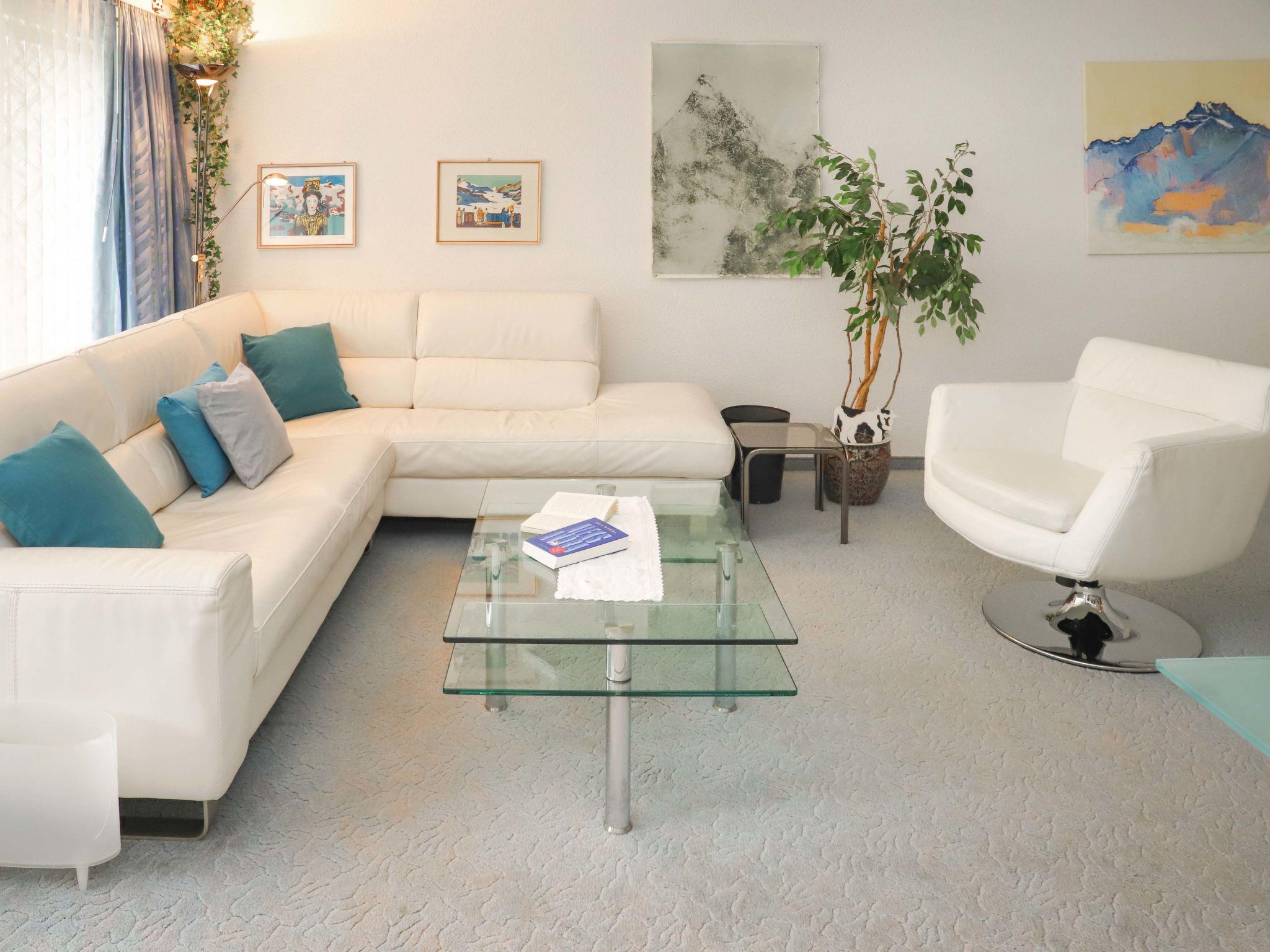 2-room apartment 80 m2 on 2nd floor, south facing position. Large living/dining room with TV and radio. 1 double bedroom with 1 double bed. Kitchen (4 hot plates, oven, dishwasher, microwave, electric coffee machine) with bar. Bath/WC. Balcony. Terrace furniture. Very beautiful view of the mountains and the Matterhorn. Facilities: Internet (WiFi, free). Please note: non-smokers only. Beautiful view of the Matterhorn.