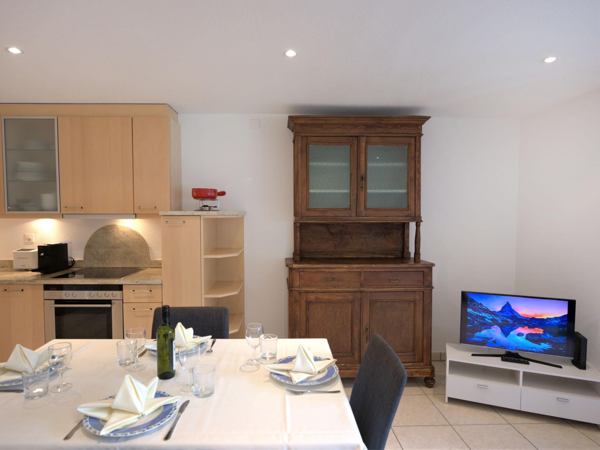 2-room apartment 45 m2 on 1st floor, south facing position. Simple and cosy furnishings: living/sleeping room with 1 double sofabed (1 x 150 cm, length 200 cm), dining table and TV. Exit to the balcony. 1 room with 1 double bed (160 cm, length 200 cm). Open kitchen (oven, dishwasher, 4 induction hot plates, toaster, kettle, freezer, electric coffee machine, fondue Set (cheese)). Shower/WC, hydro massage shower. Small balcony, south facing position. Balcony furniture. Beautiful view of the Matterhorn. Facilities: hair dryer. Internet (WiFi, free). Please note: non-smokers only. ZZLMRC55A10E514S