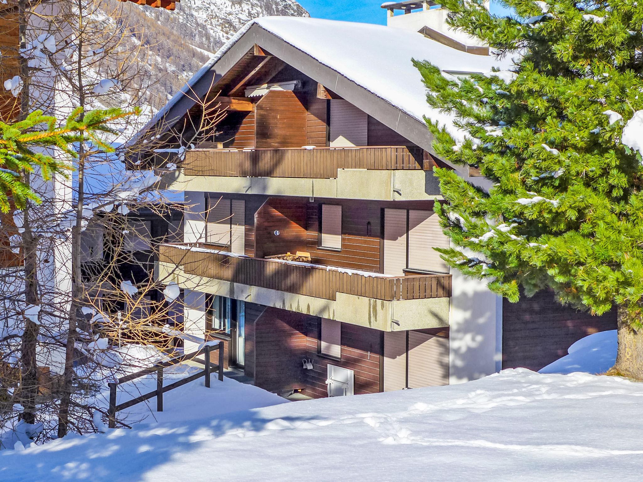 Very beautiful apartment house "Luchre", 3 storeys. In the district of Winkelmatten 1.1 km from the centre of Zermatt, in a quiet position. In the house: storage room for skis, central heating system. Stepped path (90 steps) to the house. Grocery 400 m, supermarket 850 m, restaurant, bakery 400 m, 15 minute walk to the centre, bus stop "Luchre" 65 m, railway station "Bahnhof Zermatt" 1.1 km. Mountain railway 600 m, ski rental 600 m, ski bus stop 65 m, ski school, children's ski school 850 m. Please note: no lift. Cabs cannot stop right in front of the house. The keys‘ handover takes place by the agency Interhome in Zermatt.