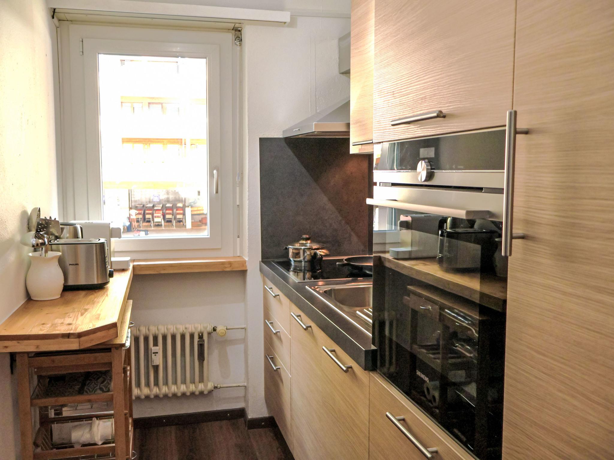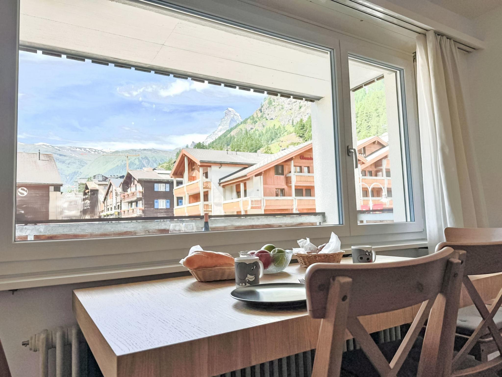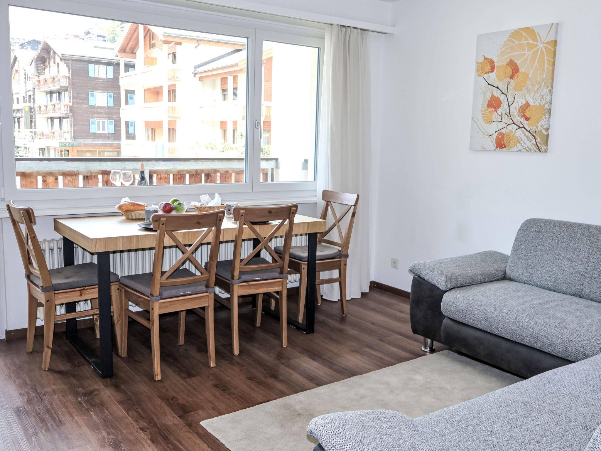 "Viktoria A", 2-room apartment 34 m2 on 1st floor. Bright, tasteful and cosy furnishings: living/dining room with dining table and digital TV. Exit to the balcony. 1 small room with 2 beds (80 cm, length 200 cm). Kitchen (oven, dishwasher, 4 ceramic glass hob hotplates, toaster, kettle, freezer, electric coffee machine). Bath/WC. Parquet floors. Balcony. Balcony furniture. Beautiful view of the mountains and the Matterhorn. Facilities: hair dryer. Internet (WiFi, free). Please note: non-smokers only.