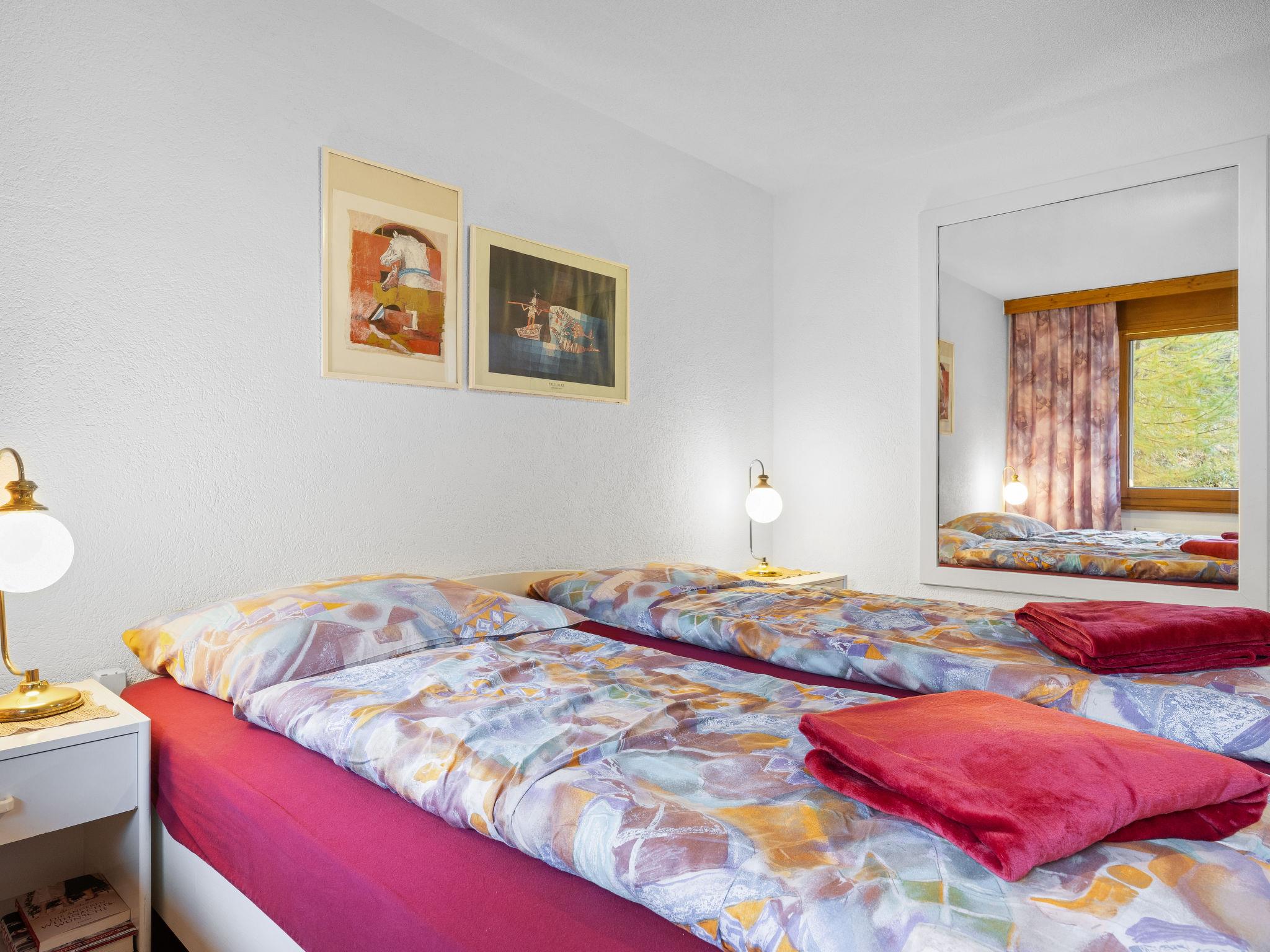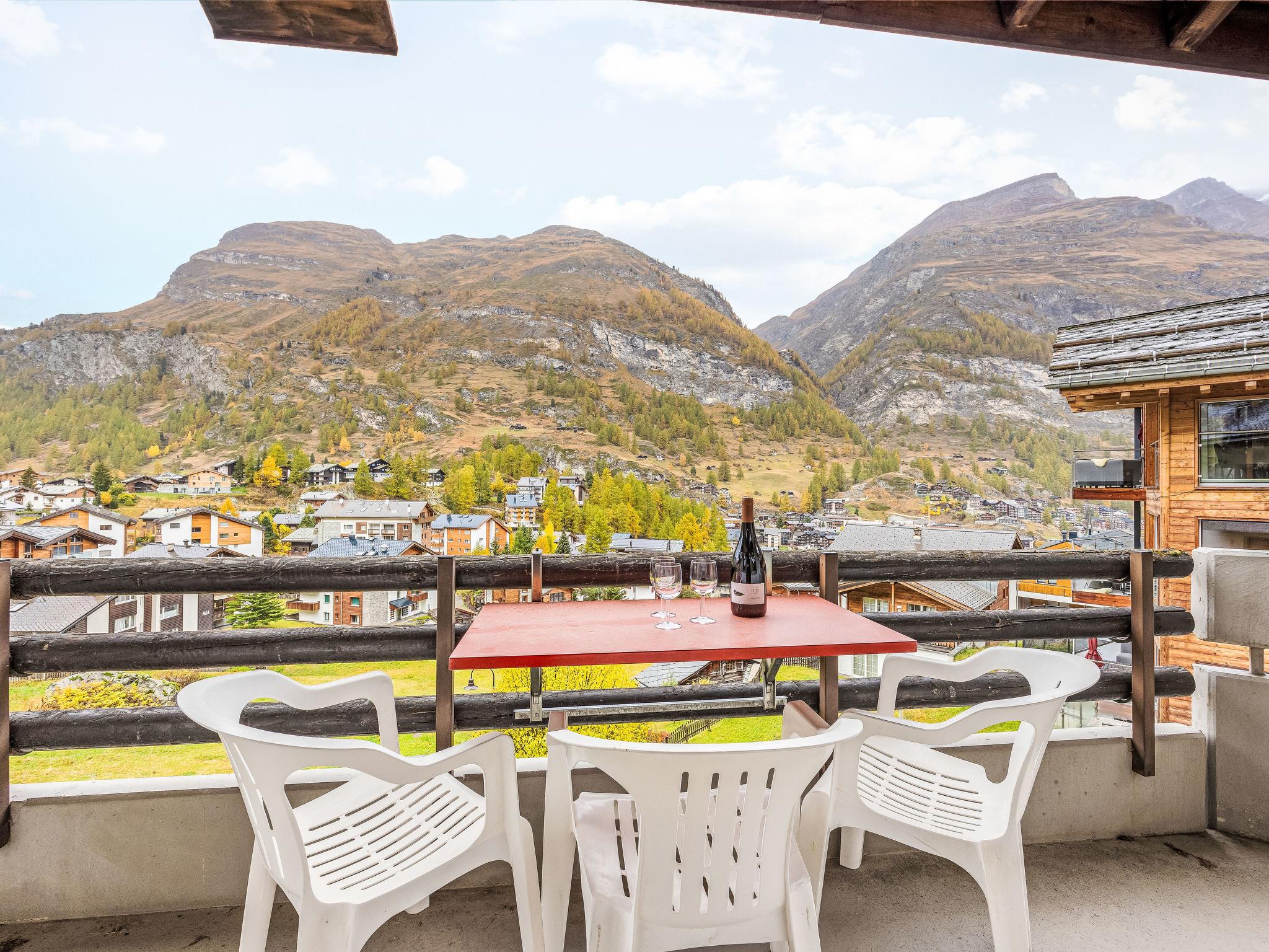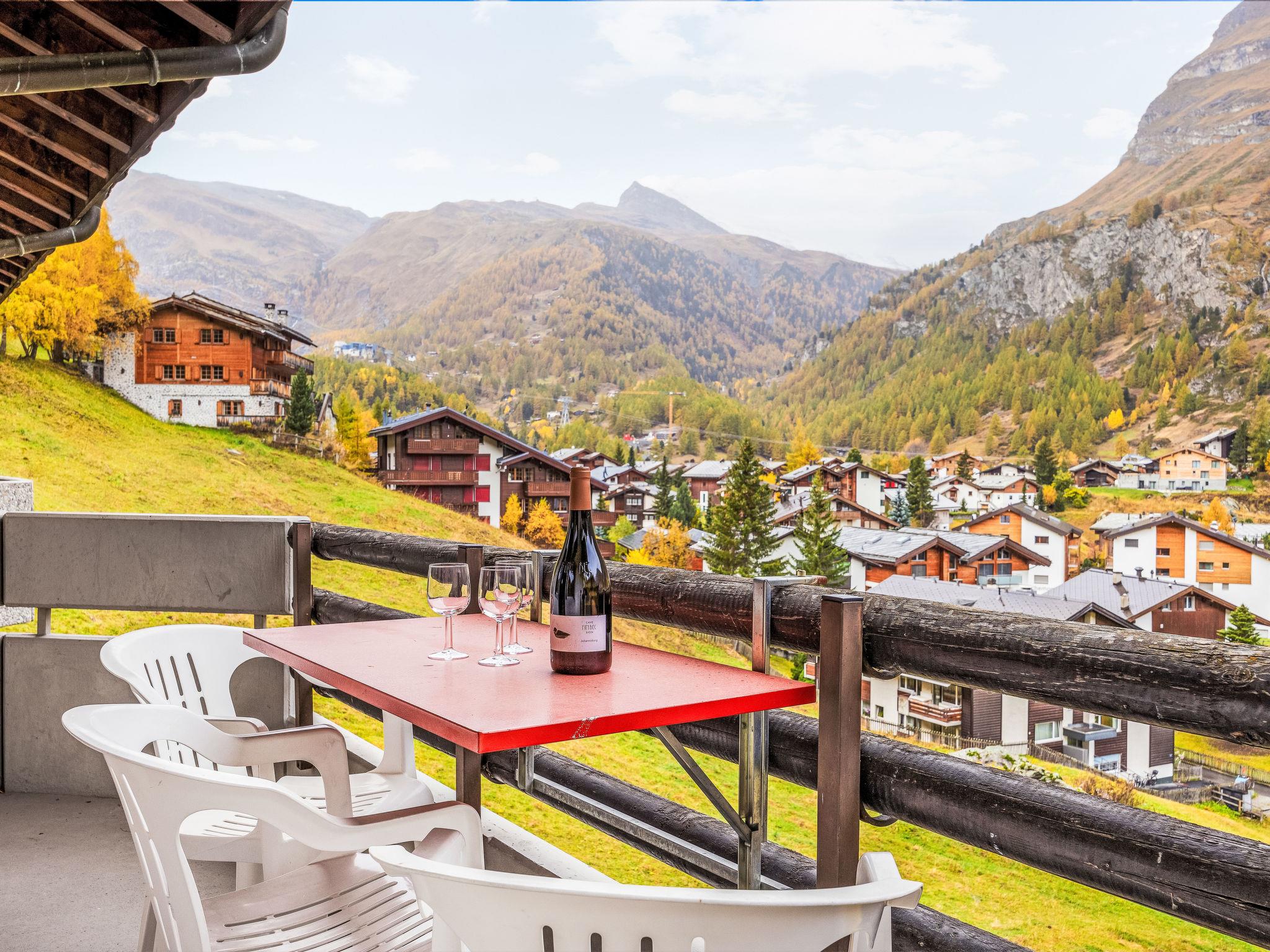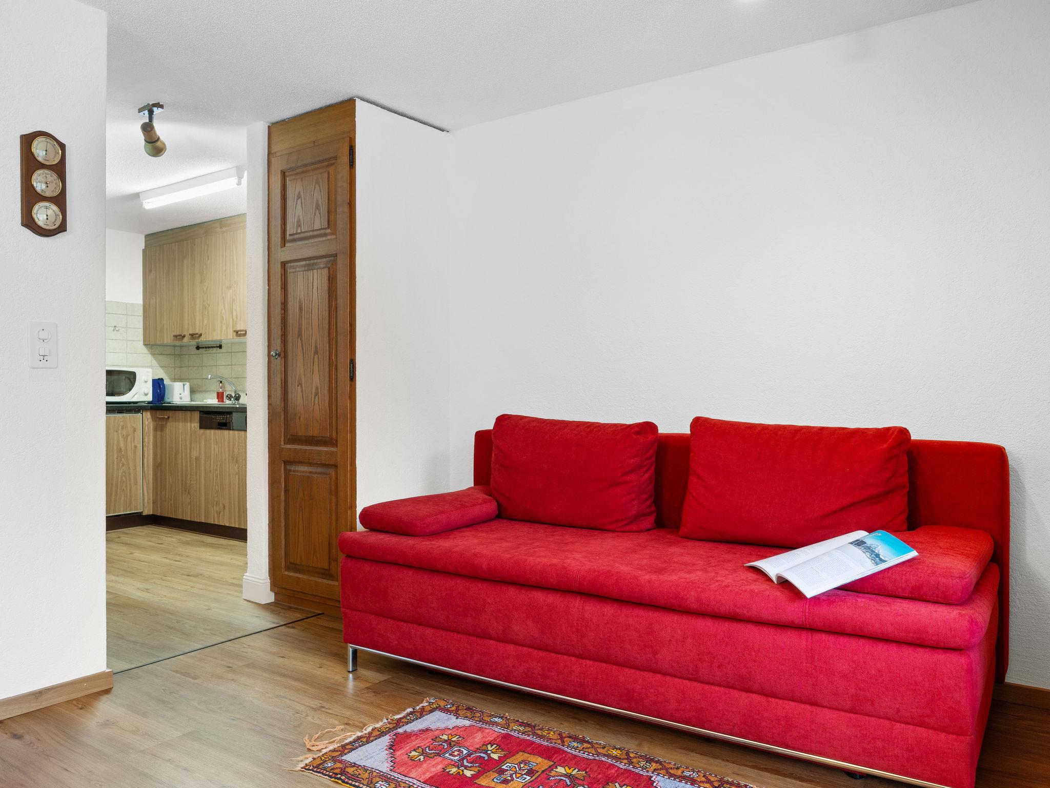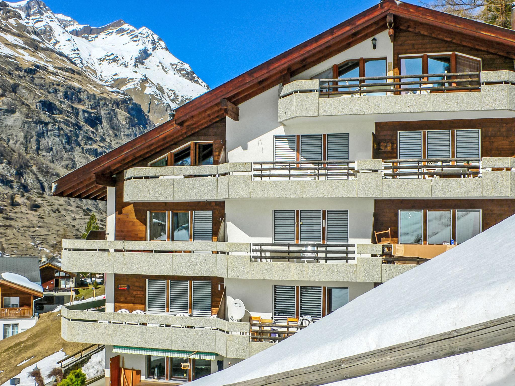 2-room apartment 55 m2 on 2nd floor. Simple and practical furnishings: open living/sleeping room with 1 sofabed (140 cm, length 200 cm), dining table and TV. Exit to the balcony, south facing position and west facing position. 1 double bedroom with 1 double bed (2 x 90 cm, length 200 cm). Open kitchen (oven, dishwasher, 4 ceramic glass hob hotplates, toaster, kettle, microwave, freezer, electric coffee machine, raclette grill, fondue Set (cheese)). Bath/WC. Balcony. Balcony furniture. Very beautiful view of the valley and Matterhorn. Facilities: hair dryer. Internet (WiFi, free). Please note: non-smokers only.