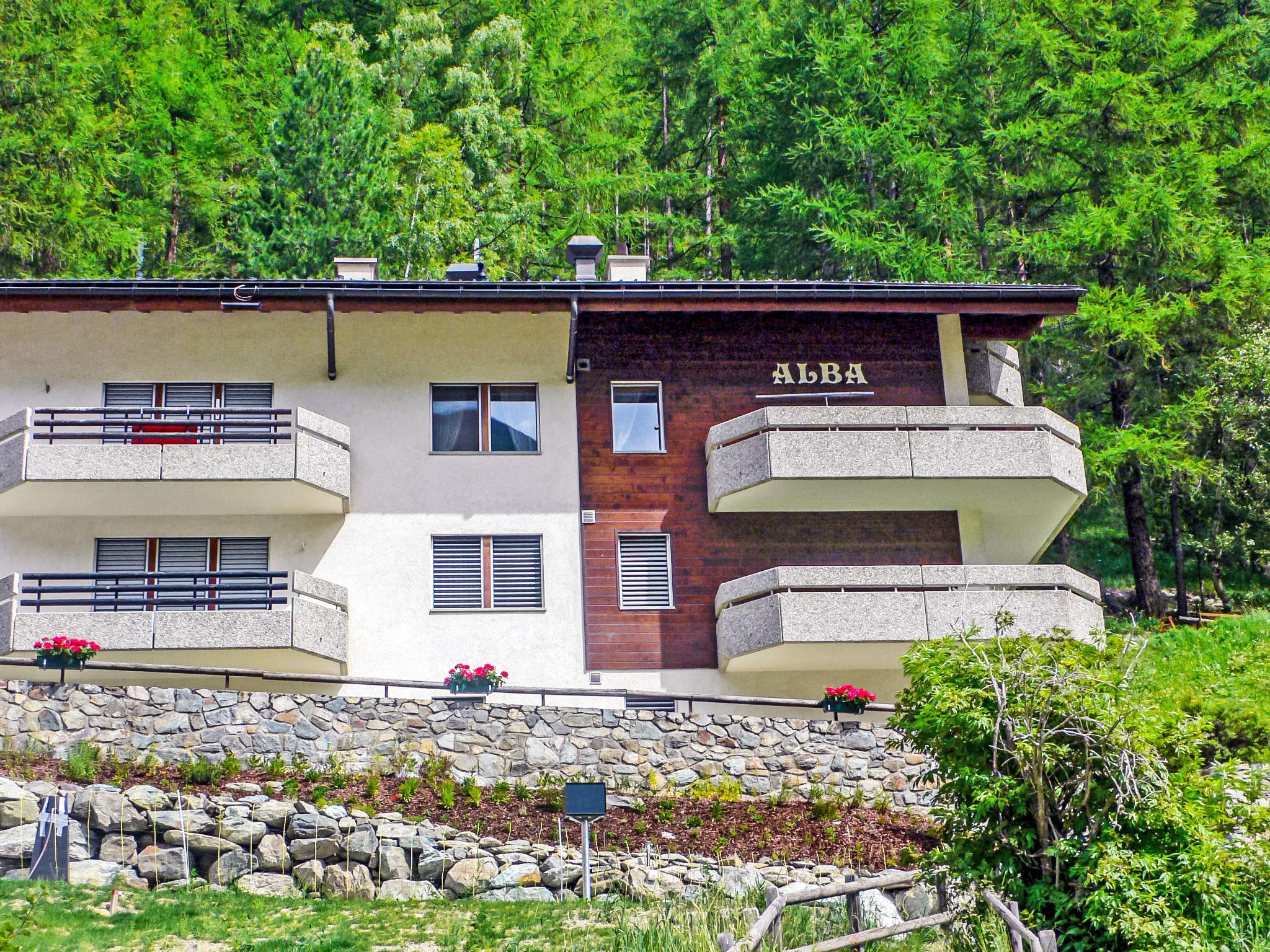 Simple apartment house "Alba", 4 storeys. In the district of Winkelmatten 1.3 km from the centre of Zermatt, in a quiet, sunny position on a slope, west facing position. In the house: storage room for skis, central heating system. 150 m steep footpath to the house. Supermarket 1 km, restaurant 500 m, bakery 550 m, 20 minute walk to the centre, bus stop "Wiestiboden" 270 m, railway station "Bahnhof Zermatt" 1.3 km. Mountain railway, ski rental 850 m, ski bus stop 270 m, ski school 1 km, children's ski school 1 km. Hiking paths: Objekt liegt am Wanderweg nach, Findeln/Sunnegga AHV Weg. Please note: no lift. Cabs cannot stop right in front of the house. The keys‘ handover takes place by the agency Interhome in Zermatt.