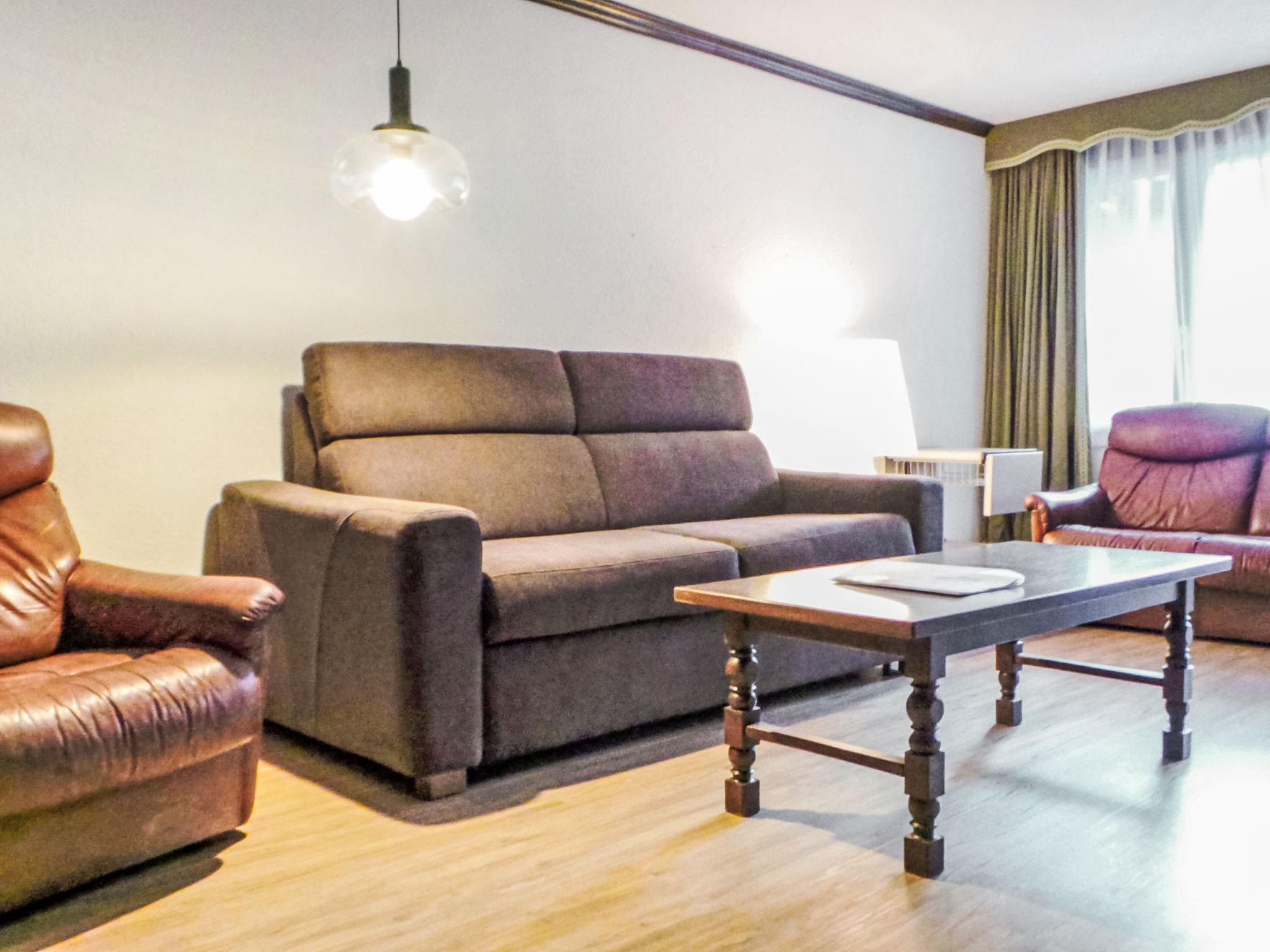 2-room apartment 55 m2 on 2nd floor, south facing position. Simple and cosy furnishings: living/sleeping room with 1 sofabed (160 cm, length 200 cm), dining table and TV. Exit to the balcony. 1 room with (length 200 cm), 1 double bed (2 x 90 cm, length 200 cm). Open kitchen (oven, dishwasher, 4 ceramic glass hob hotplates, toaster, kettle, microwave, freezer, electric coffee machine, fondue Set (cheese)). Bath/shower/WC. Balcony, south facing position. Balcony furniture. Side view of the mountains. Facilities: hair dryer. Internet (WiFi, free). Please note: non-smokers only.