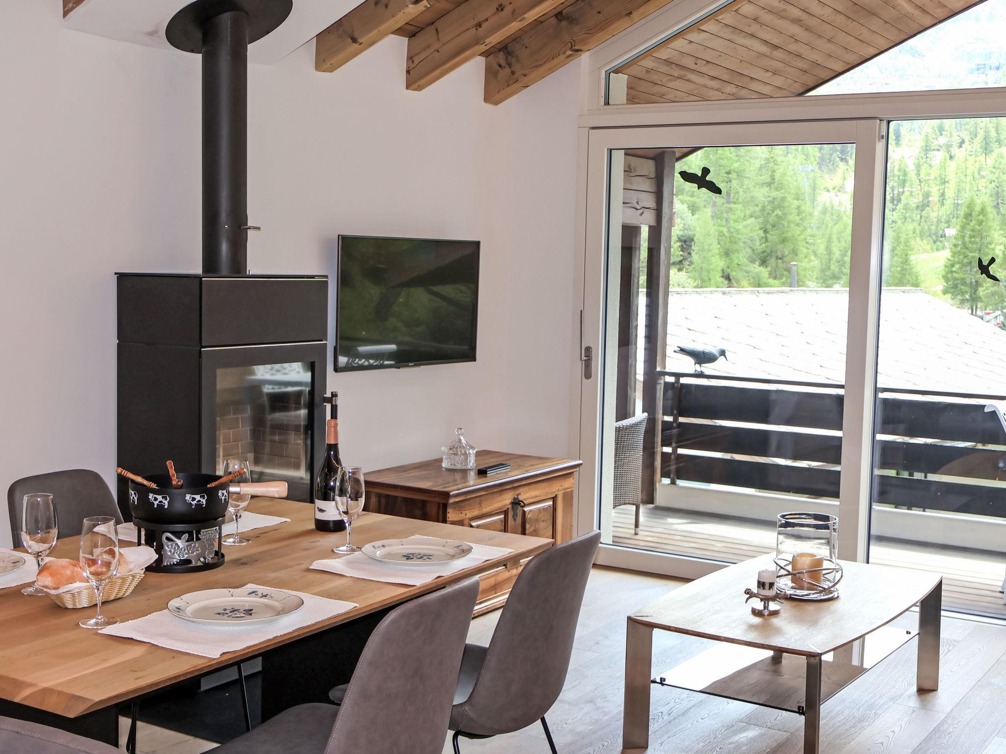 "Zen Stecken A", 3-room apartment on 3rd floor, south facing position. Fully renovated, beautiful and modern furnishings: living/dining room with Scandinavian wood stove, dining table and digital TV. Exit to the balcony. 1 double bedroom with 1 double bed (180 cm, length 200 cm). 1 room with 2 beds (90 cm, length 200 cm), digital TV. Open kitchen (oven, dishwasher, 4 induction hot plates, electric coffee machine, fondue Set (cheese)). Shower/WC. Underfloor heating. Parquet floors. Balcony. Balcony furniture. Very beautiful view of the mountains and the Matterhorn. Facilities: hair dryer. Internet (WiFi, free). Please note: non-smokers only.