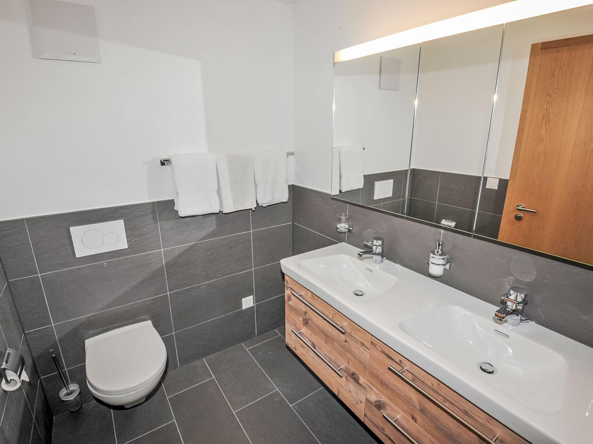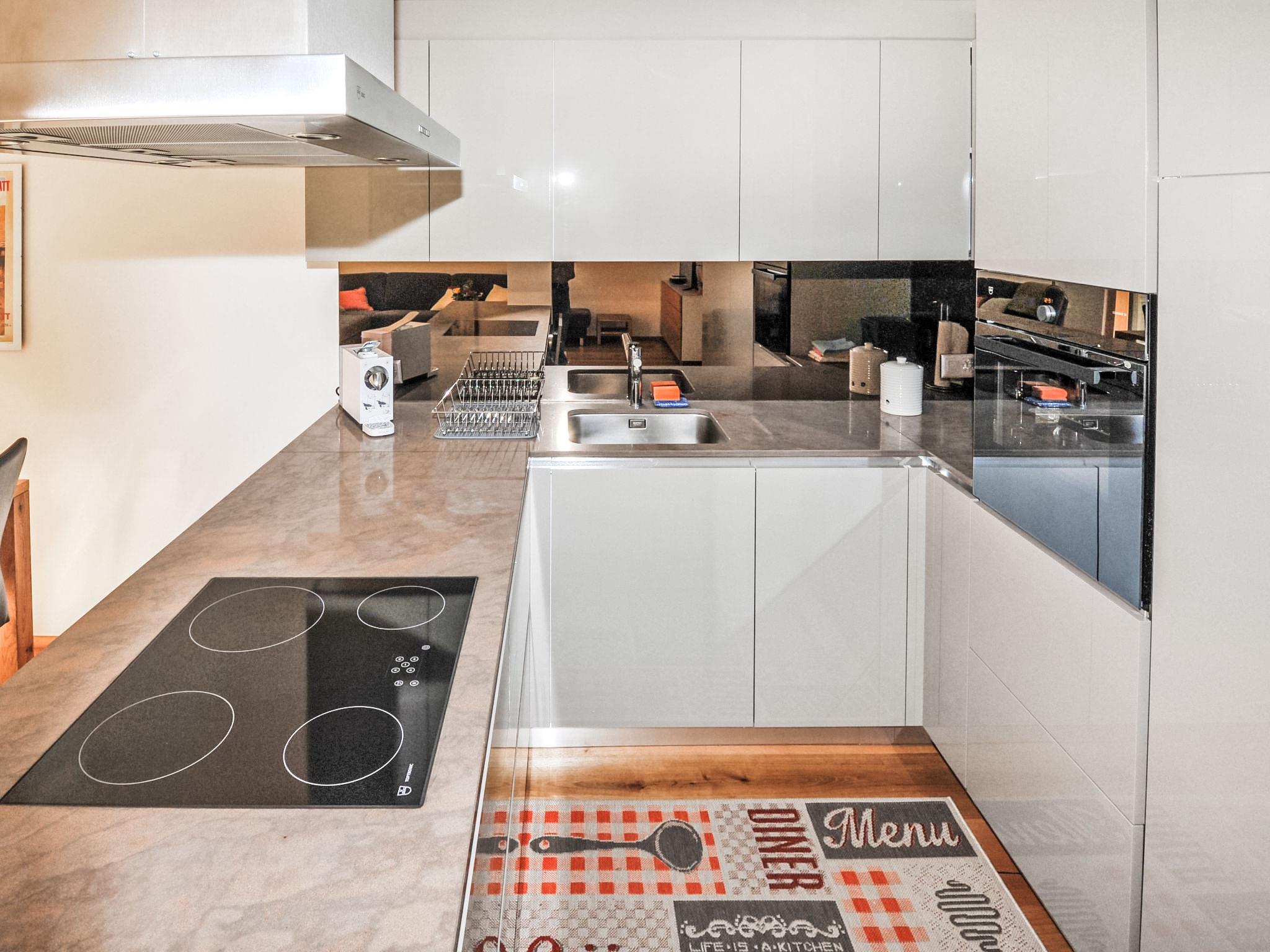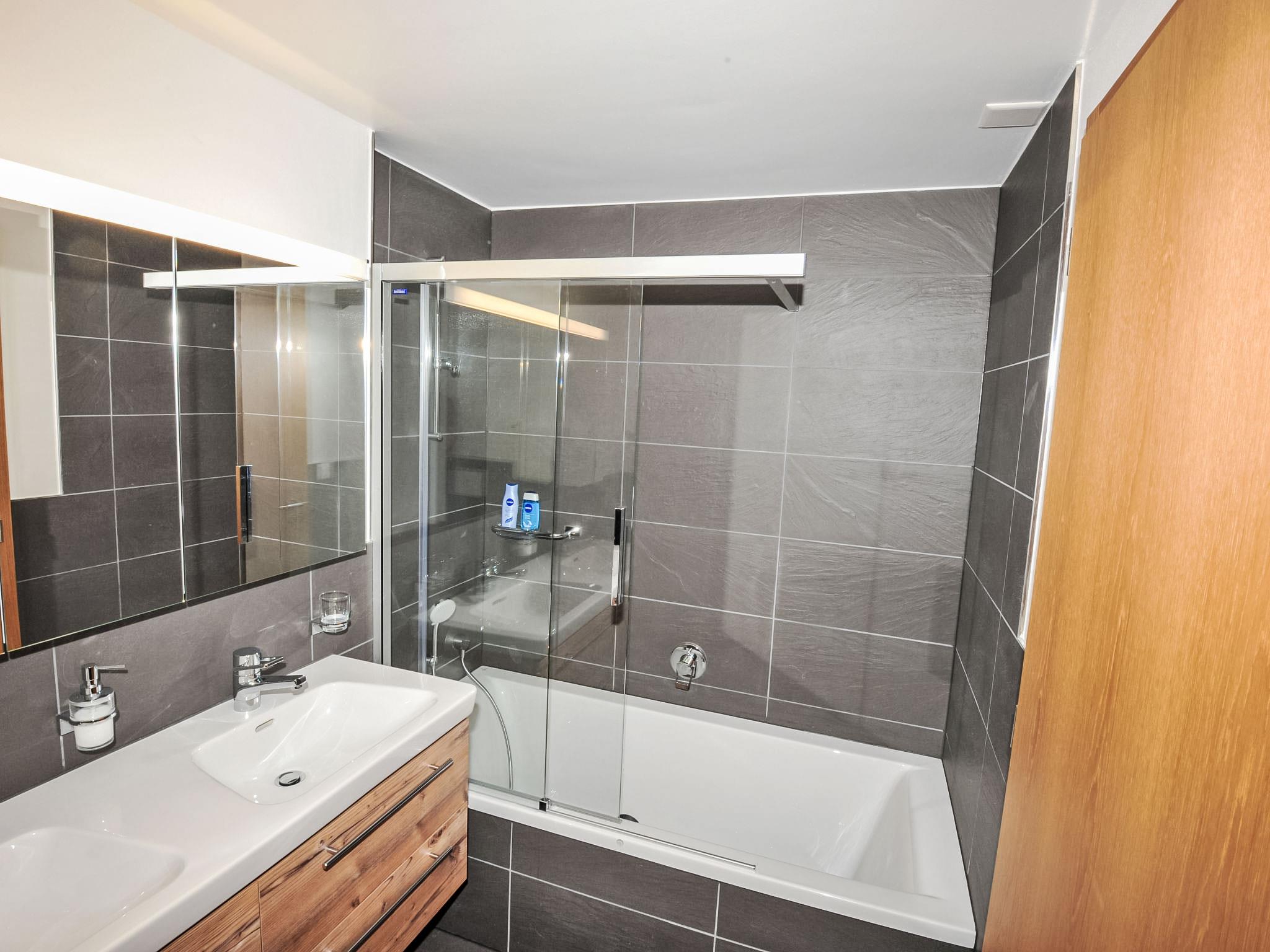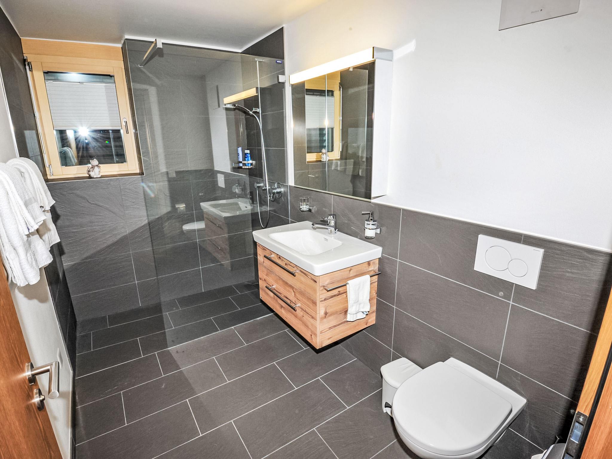 4-room apartment 128 m2, on the ground floor. Renovated in 2016, modern and tasteful furnishings: living/dining room with dining table, TV and DVD. Exit to the terrace. 1 double bedroom with 1 double bed (2 x 90 cm, length 210 cm). 1 double bedroom with 1 double bed (2 x 90 cm, length 210 cm), bath/WC. 1 room with 1 double bed (2 x 80 cm, length 210 cm). Open kitchen (oven, dishwasher, 4 ceramic glass hob hotplates, toaster, kettle, freezer, electric coffee machine, raclette grill, fondue Set (chinoise, cheese)). Shower/WC. Large terrace, south facing position. Terrace furniture. Side view of the mountains. Facilities: hair dryer. Internet (WiFi, free). Please note: non-smokers only. 7
