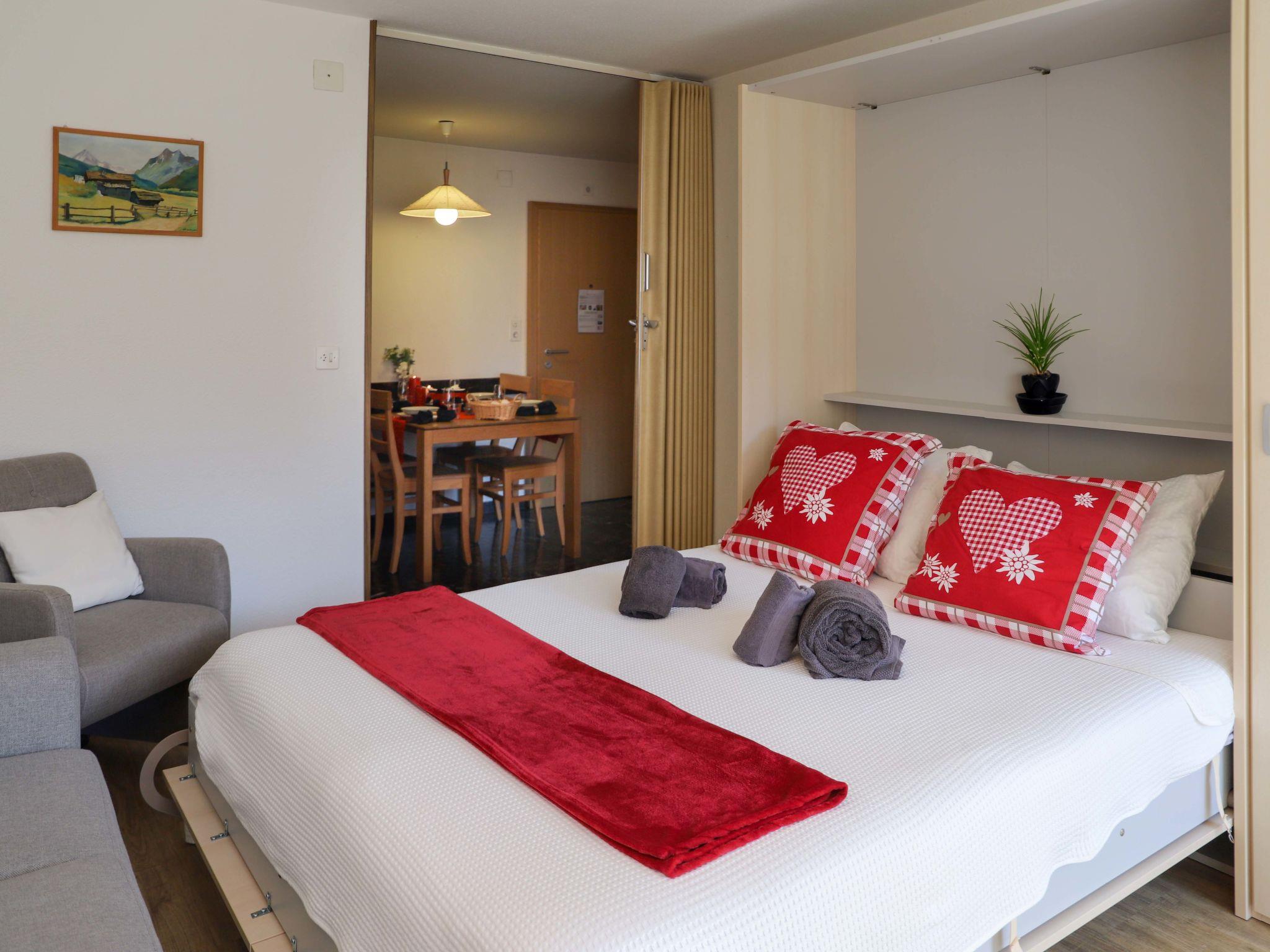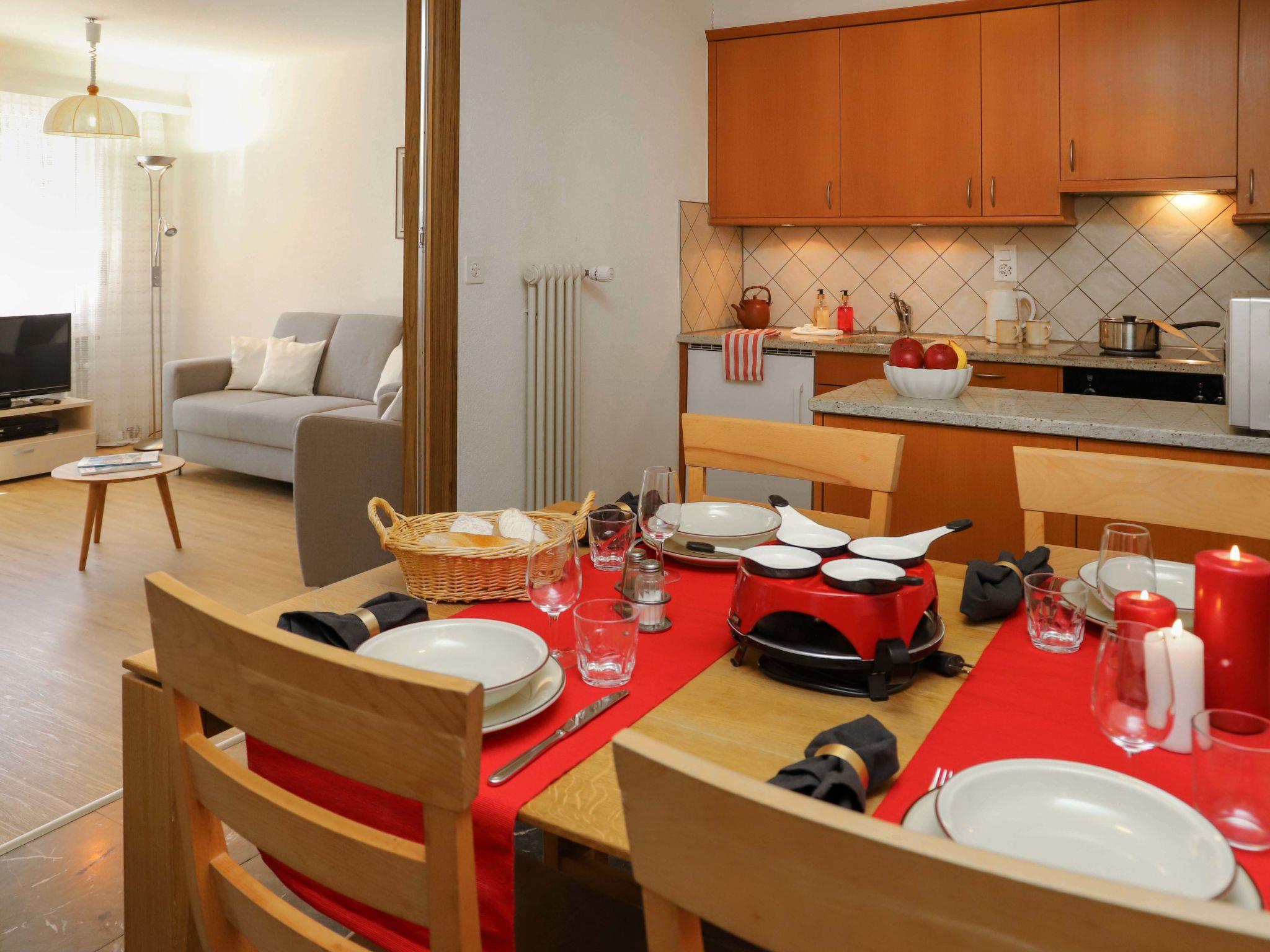 2-room apartment 53 m2 on 1st floor, south facing position. Bright, simple and cosy furnishings: living/sleeping room with 2 fold-away beds (90 cm, length 190 cm), TV, CD-player and DVD. Exit to the balcony, south facing position. 1 room with 2 beds (90 cm, length 190 cm). Exit to the balcony, south facing position. Open kitchen (oven, dishwasher, 3 ceramic glass hob hotplates, microwave, freezer). Bath/WC. Heating. Parquet floors. Balcony, south facing position. Beautiful view of the Matterhorn. Facilities: Internet (WiFi, free). Please note: non-smokers only.