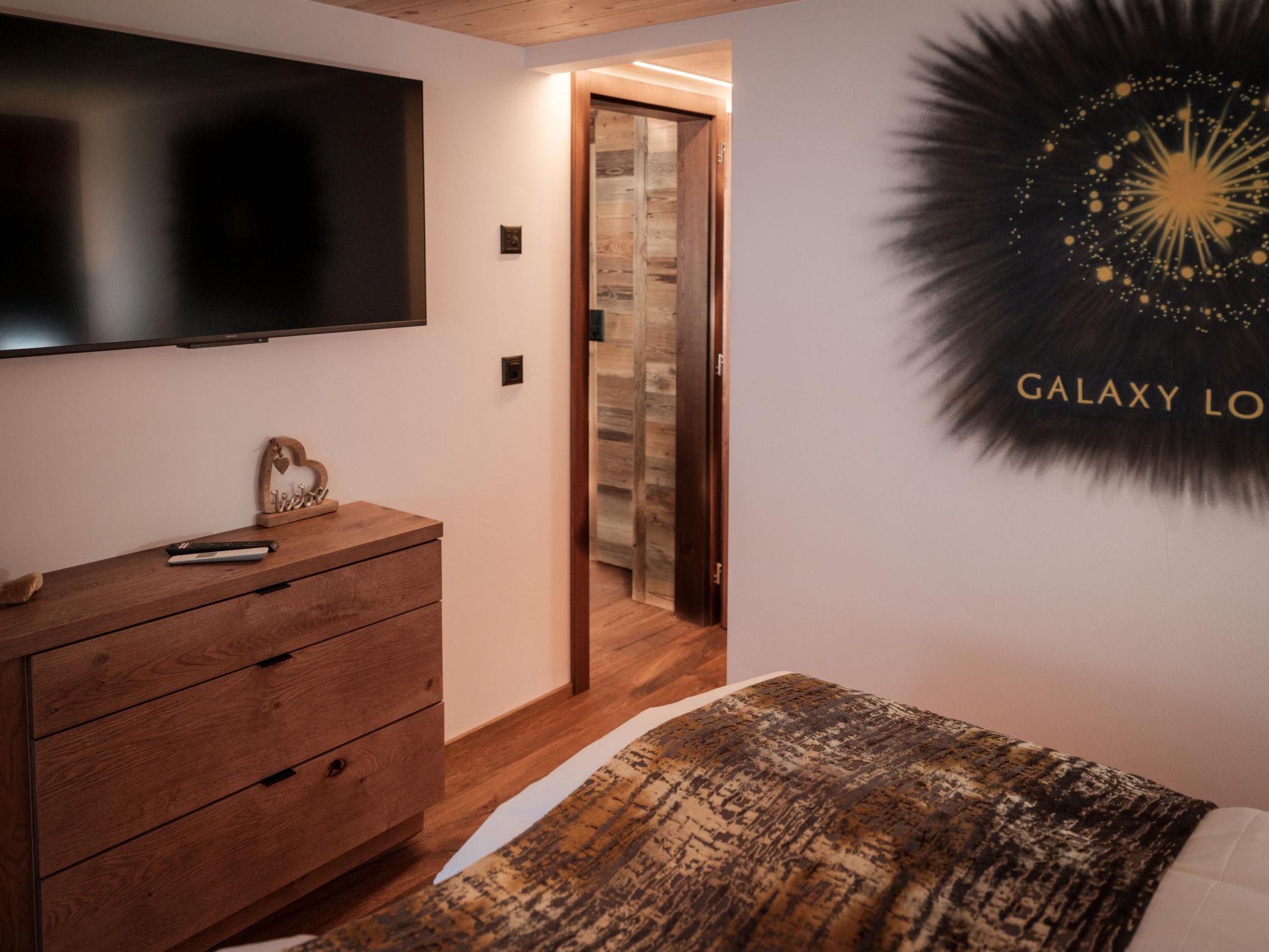 "Galaxy Lodge", 3-room apartment 52 m2 on 2 levels on 1st floor, east facing position. Fully renovated in 2023, beautiful and modern furnishings: living room with 1 double sofabed (160 cm, length 200 cm), TV. Exit to the balcony. 1 room with 1 double bed (1 x 180 cm, length 200 cm). Kitchen (oven, dishwasher, 4 ceramic glass hob hotplates, toaster, kettle, freezer, electric coffee machine). Shower/WC. Heating. Upper floor: 1 room with 1 double bed (1 x 180 cm, length 200 cm). Small balcony, west facing position. Partial view of the mountains. Facilities: hair dryer. Internet (WiFi, free). Please note: non-smokers only.