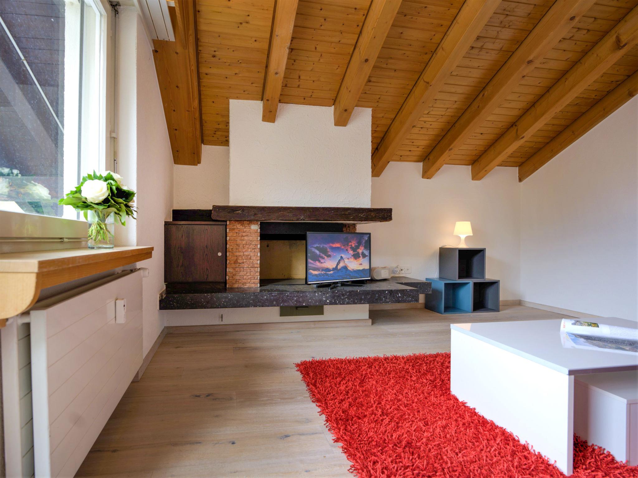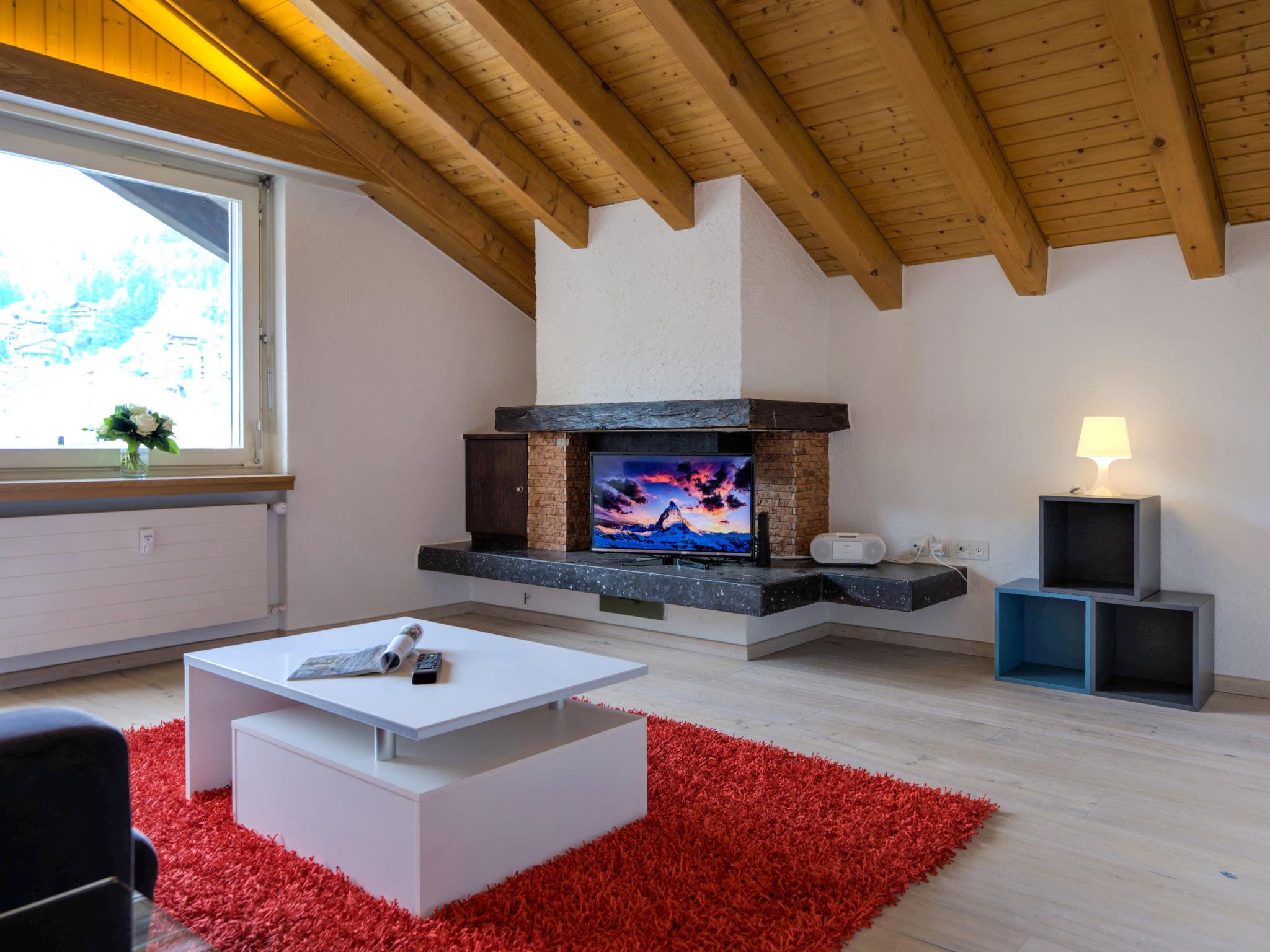 3-room apartment 65 m2 on 5th floor. Object suitable for 2 adults + 2 children. Comfortable and cosy furnishings: living room with TV, radio and CD-player. Exit to the balcony. 1 room with 1 double bed (2 x 90 cm, length 200 cm). 1 children's room with 1 x 2 bunk beds (90 cm, length 200 cm). Small kitchen (3 hot plates, oven, dishwasher, toaster, kettle, freezer, electric coffee machine, raclette grill, fondue Set (chinoise, cheese)) with dining table. Bath/WC. Balcony, south facing position. Balcony furniture. Beautiful view of the Matterhorn. Facilities: hair dryer. Internet (WiFi, free). Please note: non-smokers only.